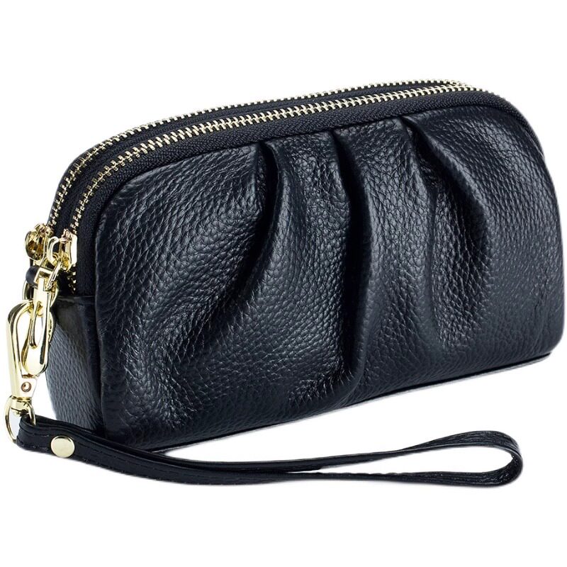 双层长款钱包气质褶皱手拿包真软皮女大容量手机包妈妈长款大钞包