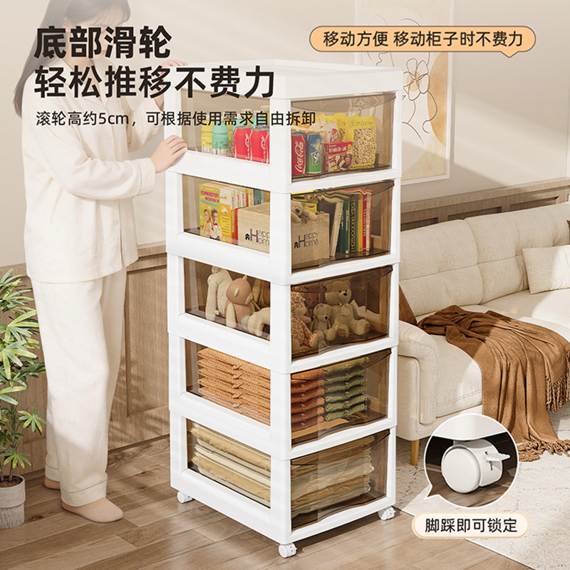 收纳柜家用多层大容量带轮储物柜整理箱卧室床头柜零食玩具收纳箱