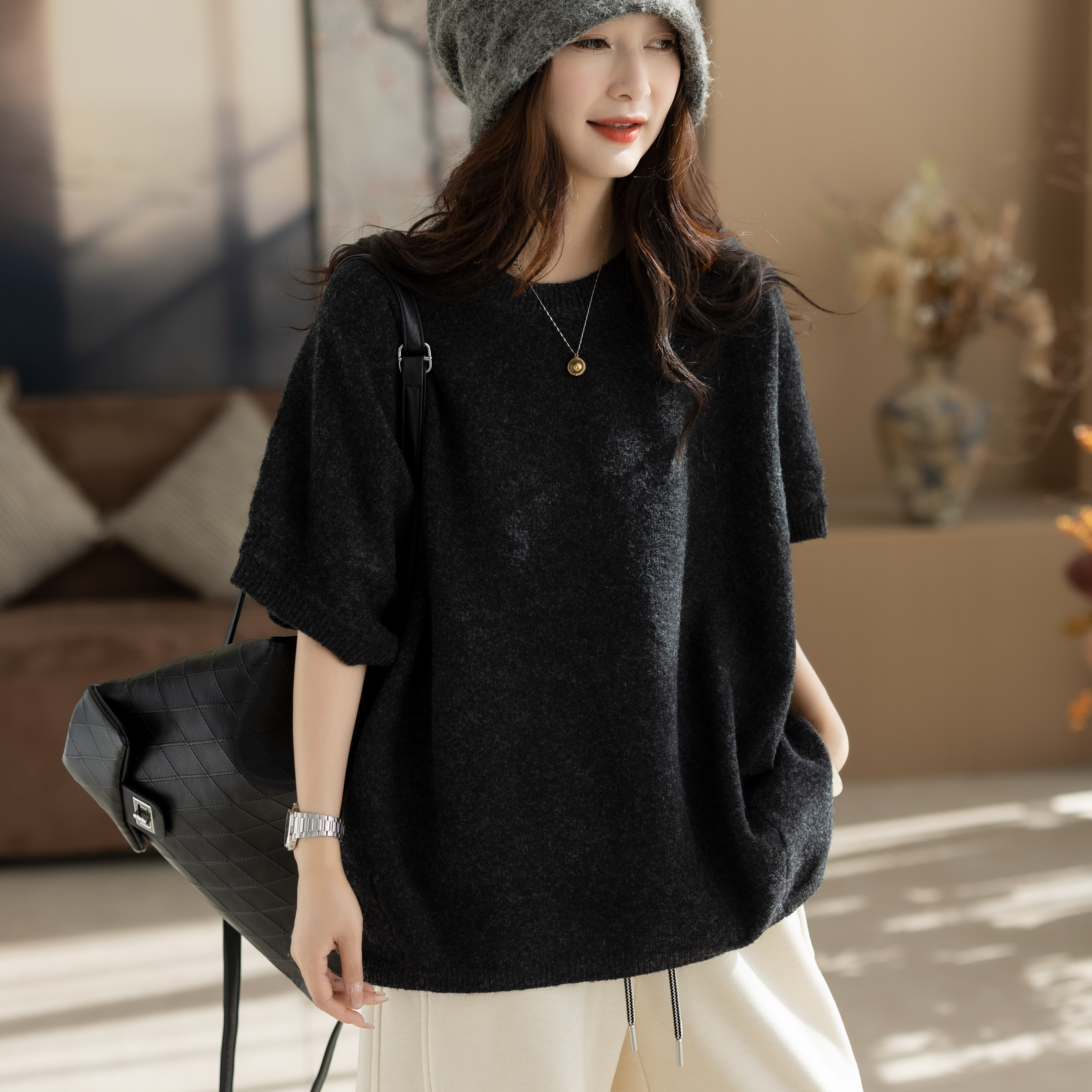咖咪羽秋冬新款针织毛衣女秋冬圆领文艺休闲女士百搭复古羊毛女款