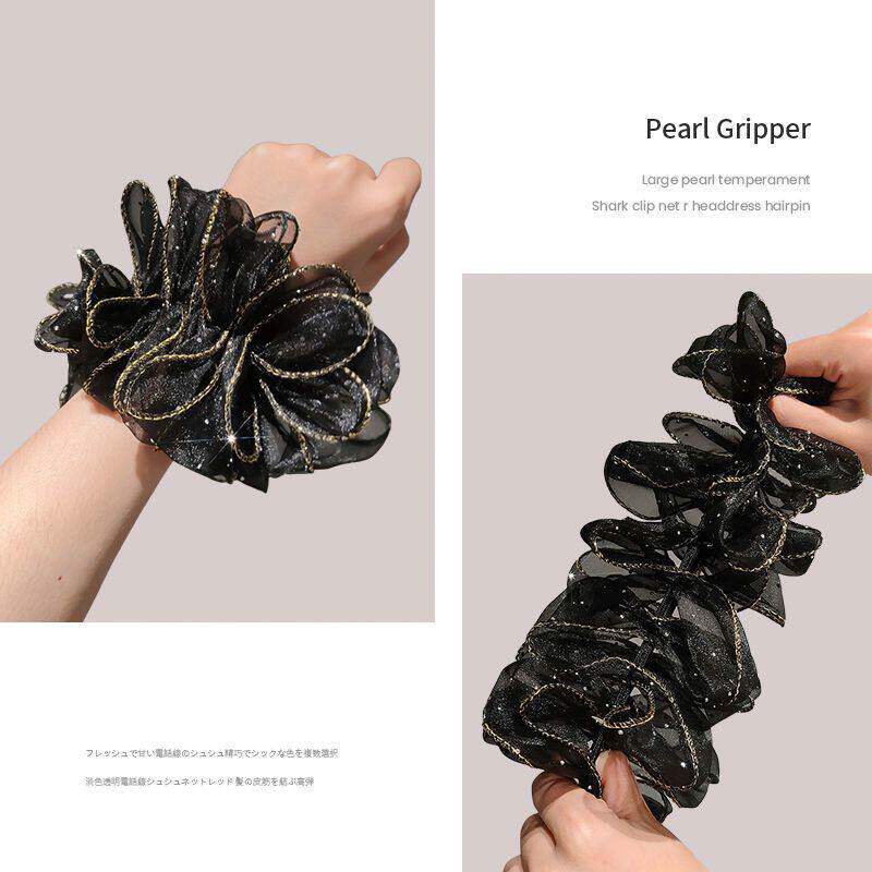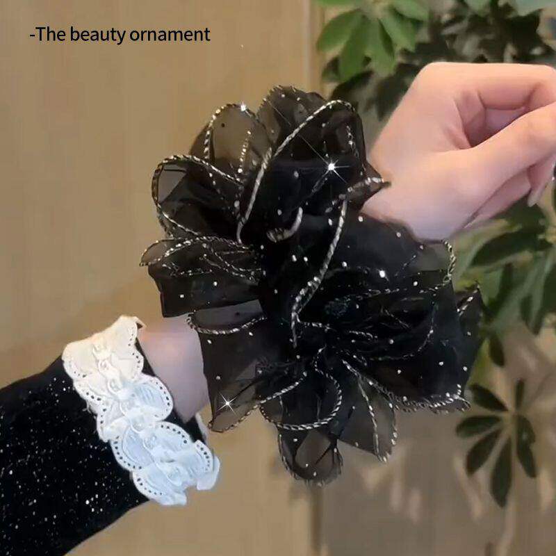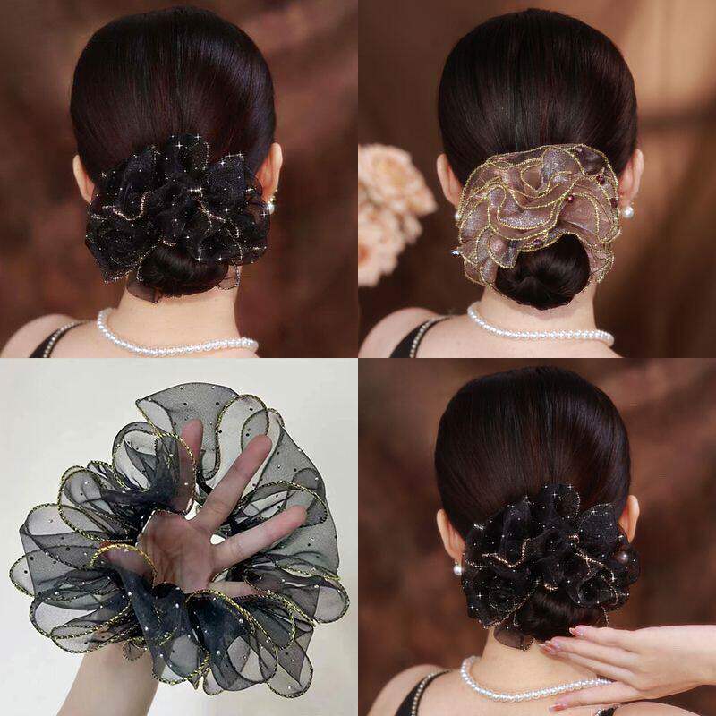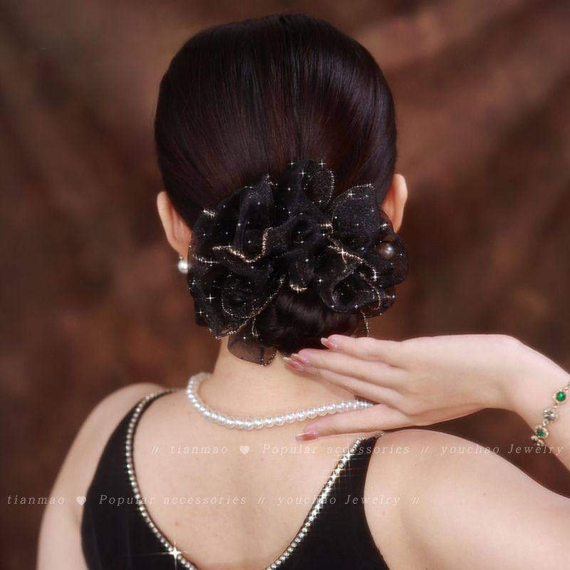 铂思亚时尚欧根纱黑色蓬松发绳女2026新款花苞头绳皮筋发圈头饰