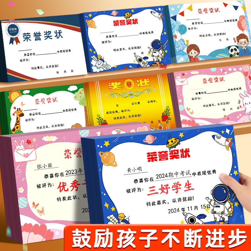 奖状纸a4可打印可爱卡通奖状小学生幼儿园儿童奖励大中迷你空白表扬信创意荣誉证书定制模板期末考试三好学生