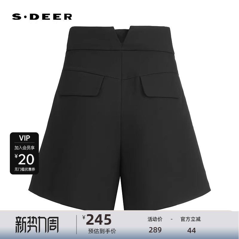 sdeer圣迪奥女装25年新品时尚高腰立体口袋宽松A字短裤S25280910