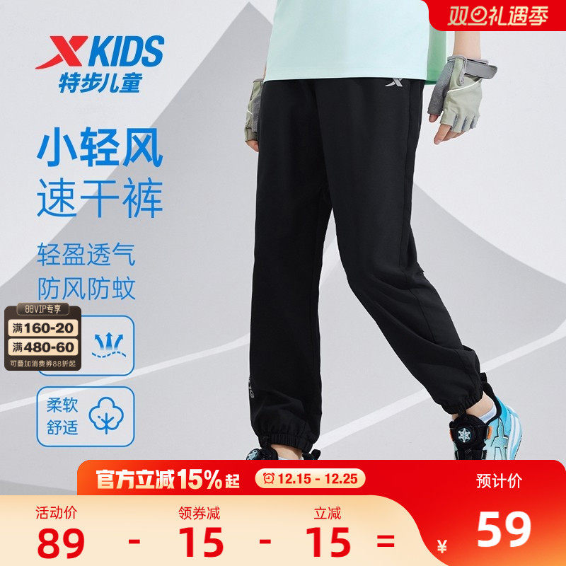 特步童装儿童运动裤男童薄款长裤2025年夏季新款大童速干裤子夏装