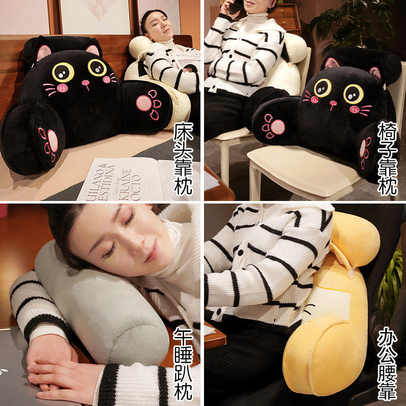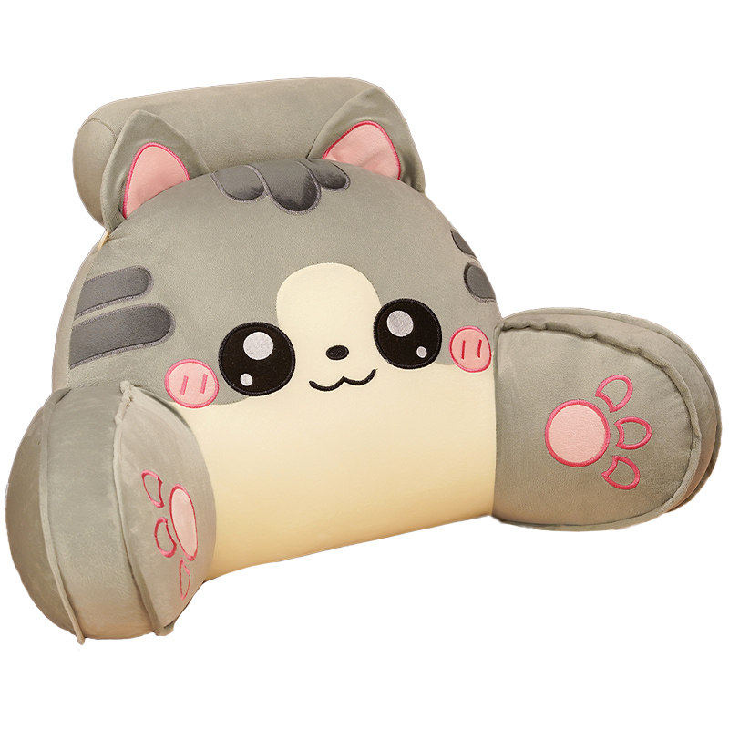猫咪造型牀头靠垫毛绒材质护腰靠枕学生宿舍用大靠背床头座椅