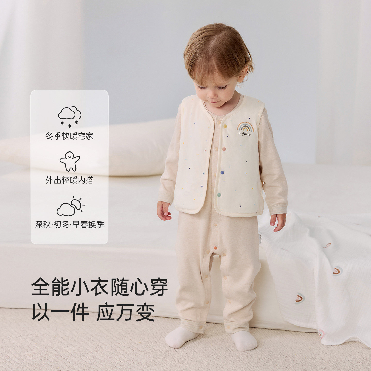 babylove婴儿马甲秋冬宝宝恒温保暖薄夹棉背心防风外出百搭坎肩