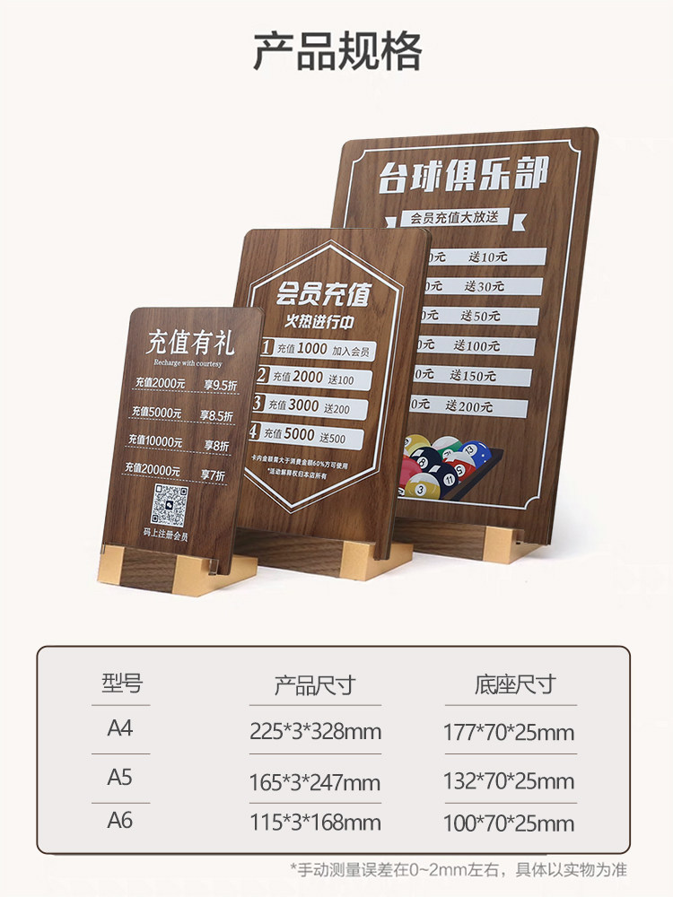会员充值展示牌立式VIP贵宾招募广告牌美容美体发廊理发价格表美甲美睫纹绣桌面摆台产品介绍牌台球室价目表