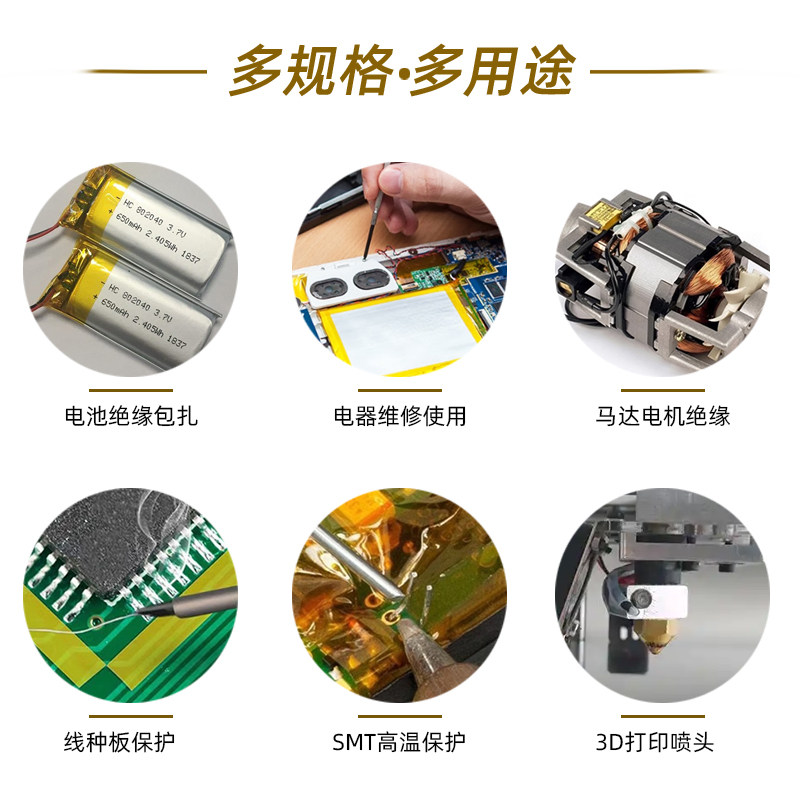 荣晋森金手指耐高温胶带PI聚酰亚胺胶带线路板防焊耐热电池包扎热转印烤箱隔热手机维修固定屏茶色绝缘胶带