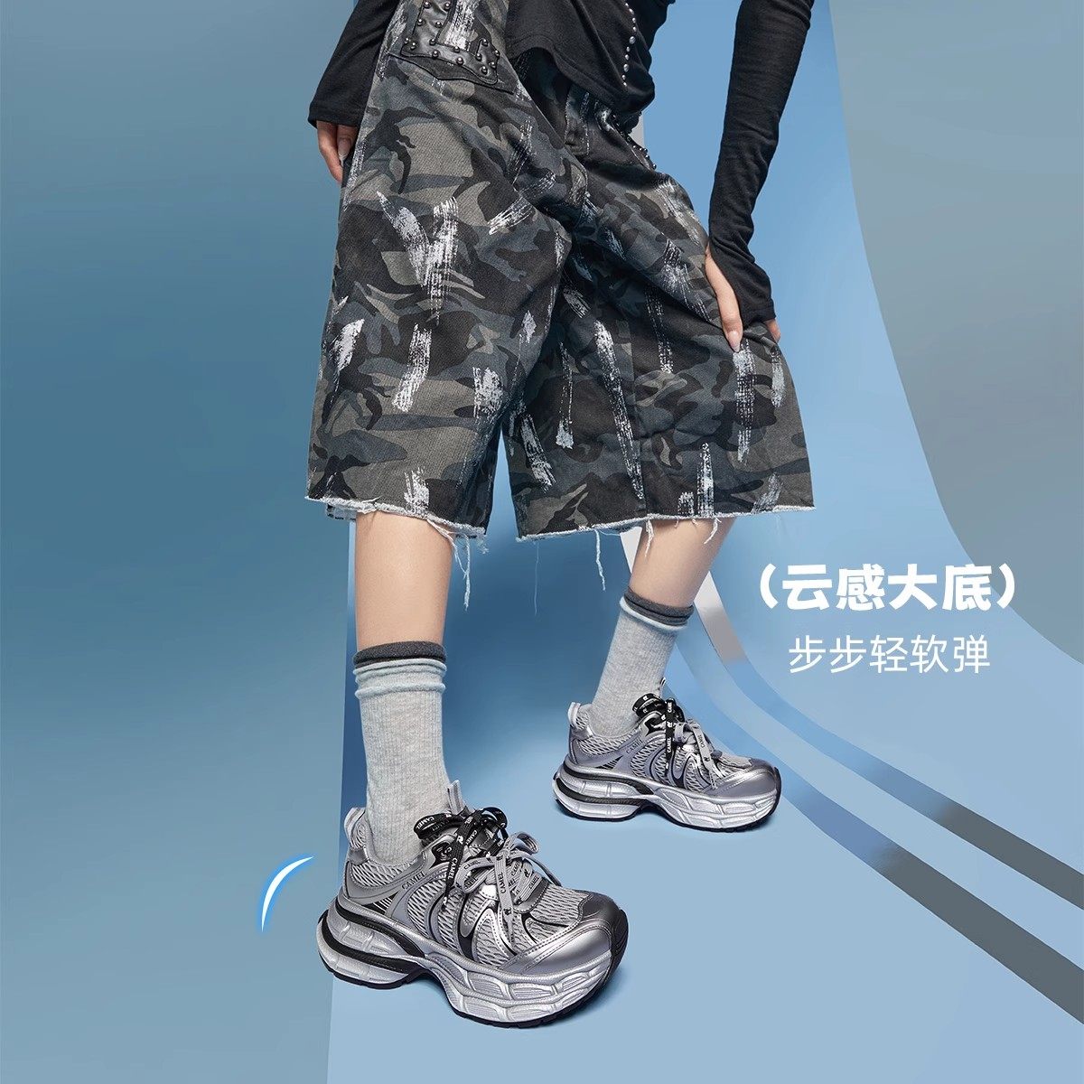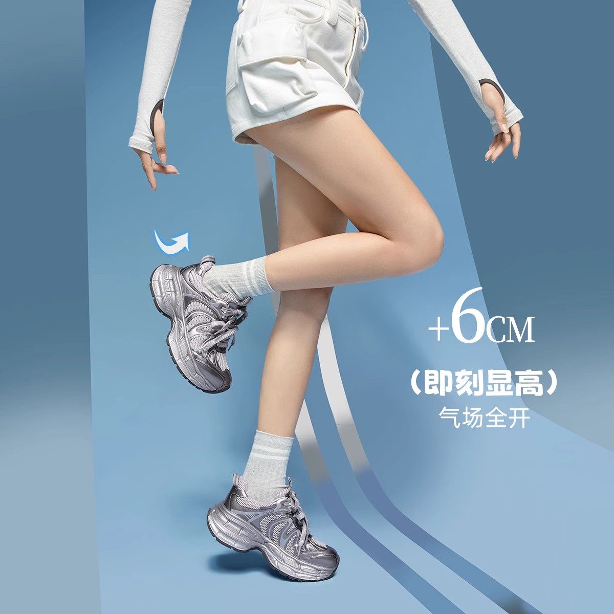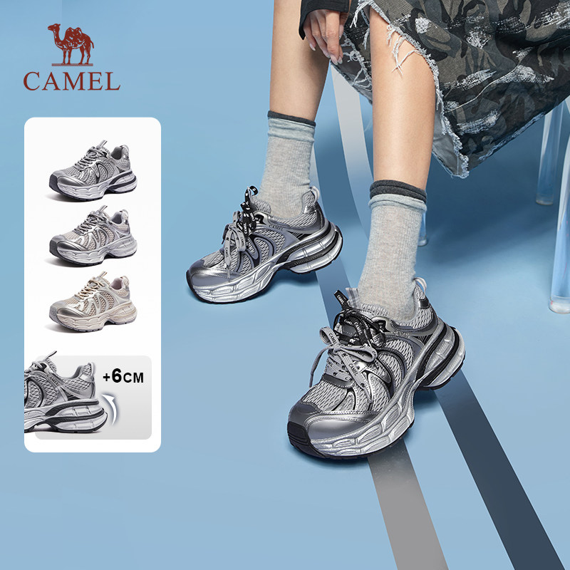 骆驼银月2代老爹鞋女2025秋新款厚底增高休闲银色跑步鞋运动鞋女