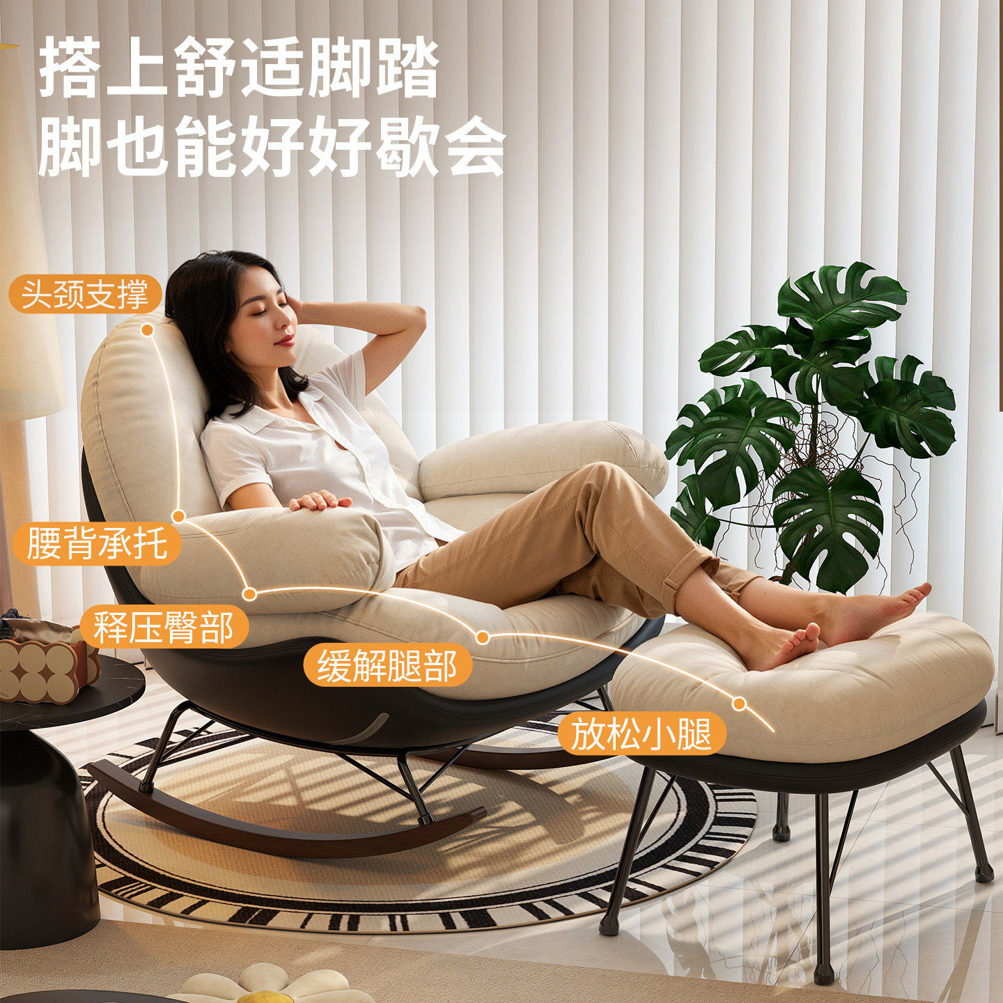 摇椅大人躺椅阳台家用休闲客厅懒人摇摇椅轻奢设计师单人沙发椅子
