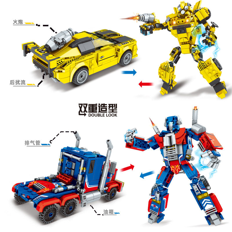 兼容乐高积木小颗粒拼装变形机甲金刚儿童拼插玩具汽车人模型批发