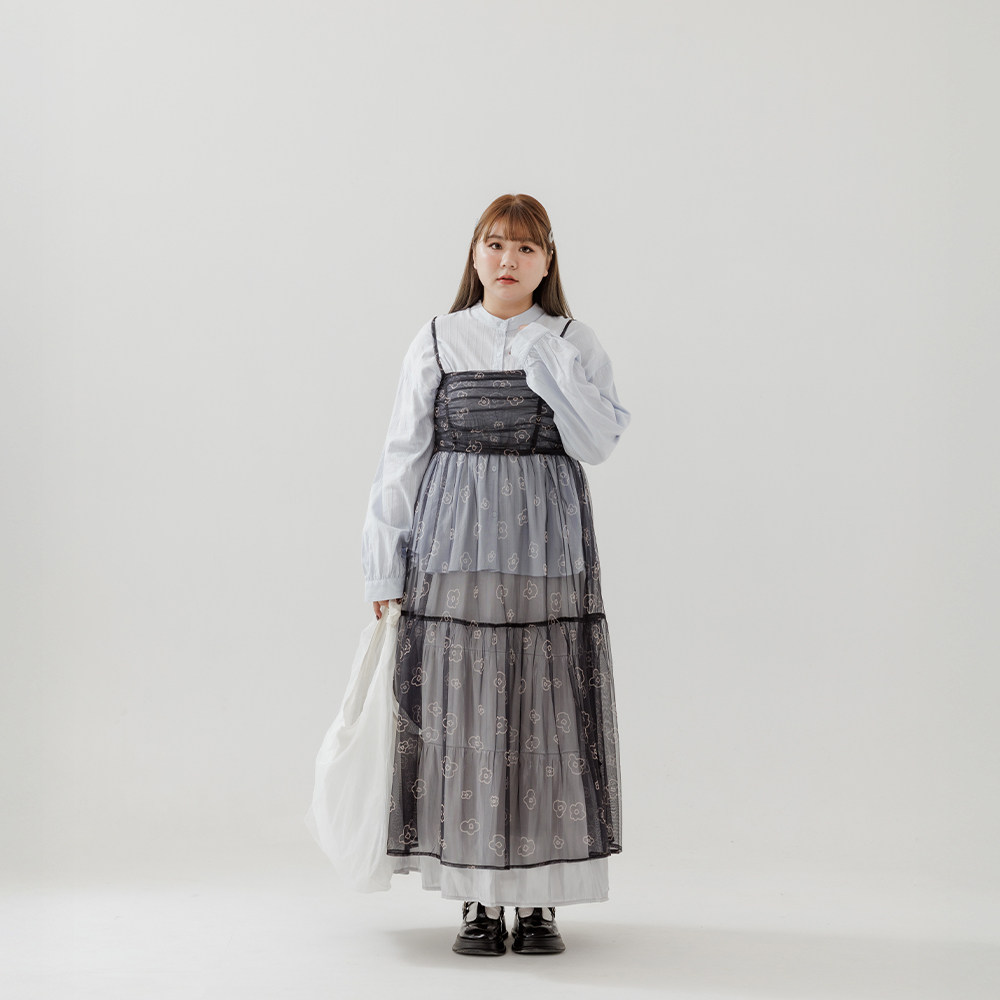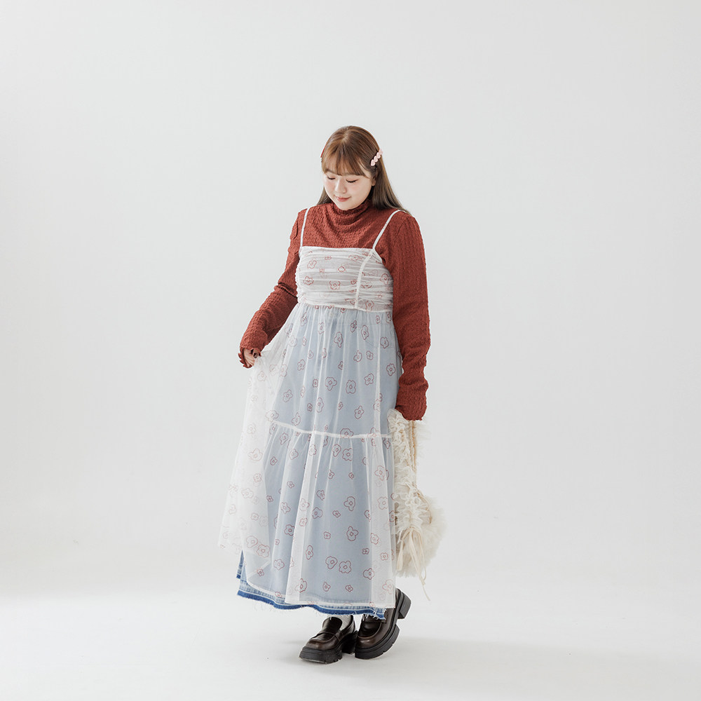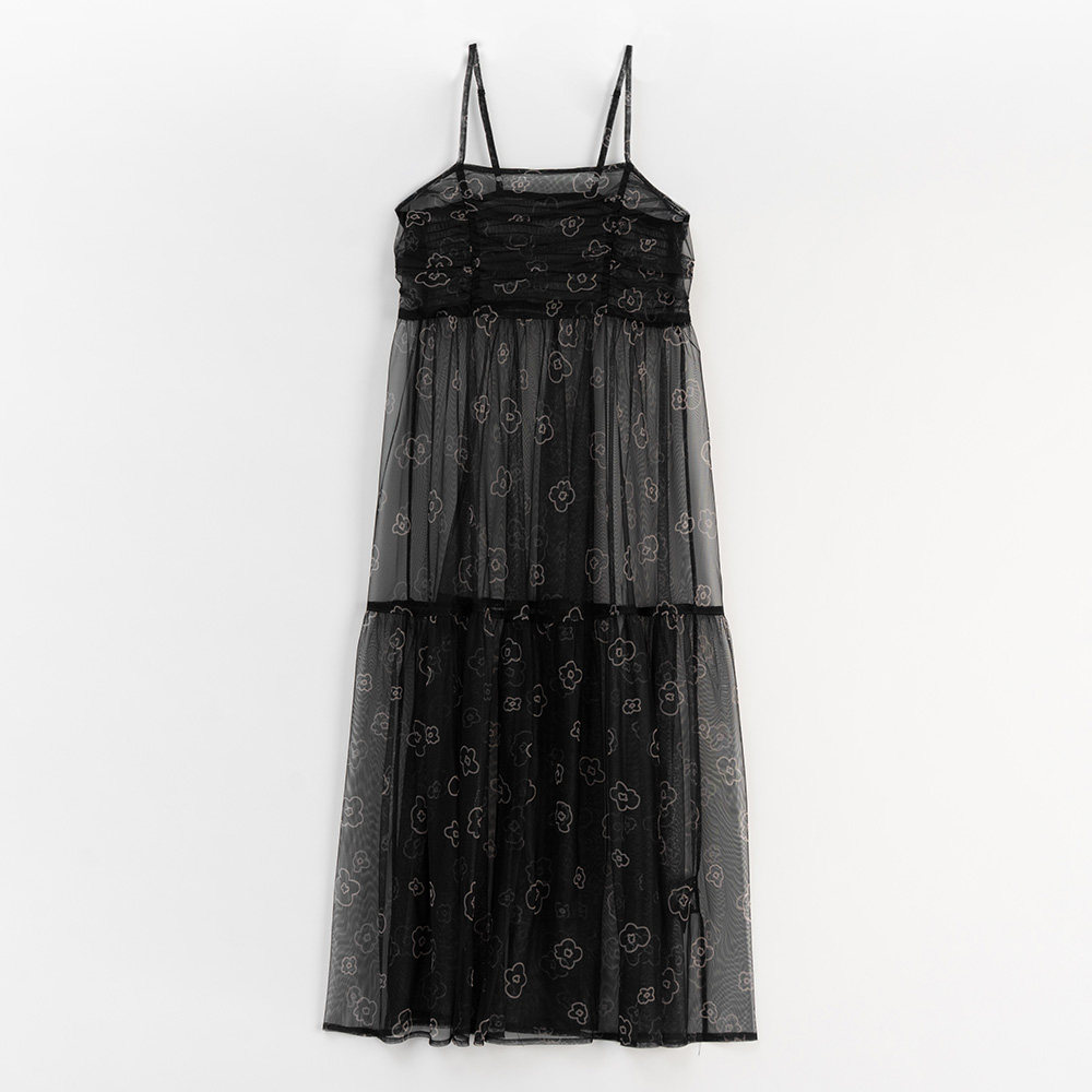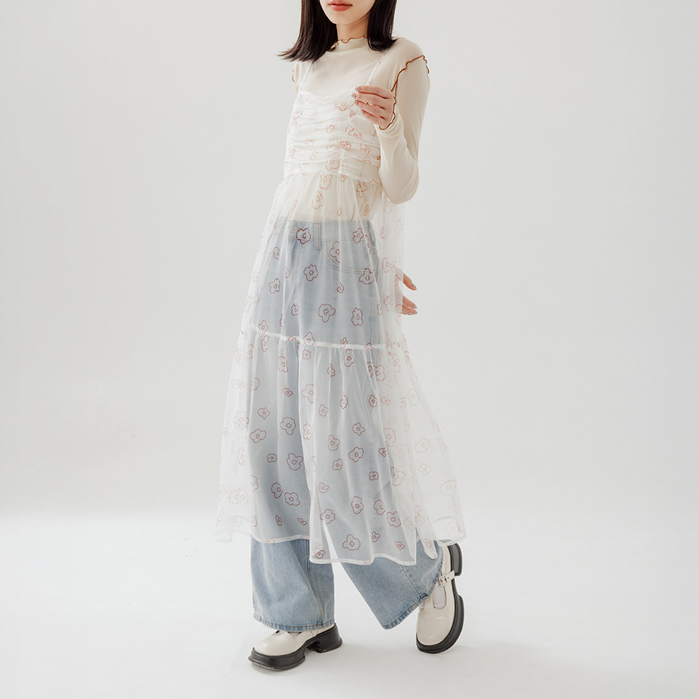 QUEENSHOP 2025秋冬新品女装棉花糖花花透纱细肩长罩衫01099377
