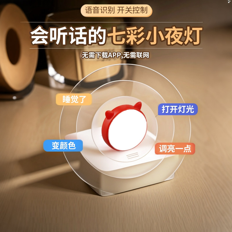 智能语音小夜灯卧室床头声控声音控制USB说话开关灯语音识别台灯
