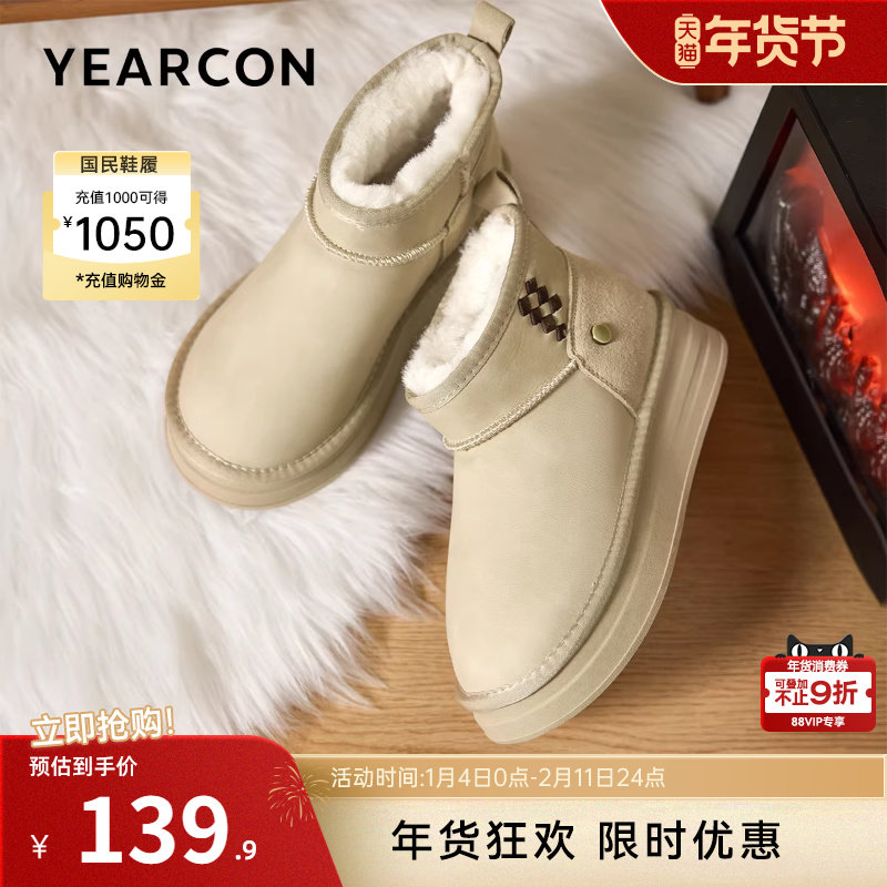 意尔康女鞋2025冬季新款加绒保暖棉鞋厚底短筒雪地靴户外休闲短靴