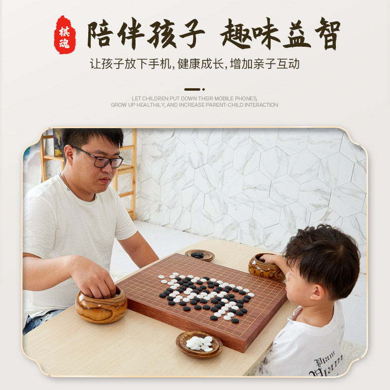 围棋棋盘套装儿童实木成人新棋魂小学生19路象棋五子棋楠竹新云子