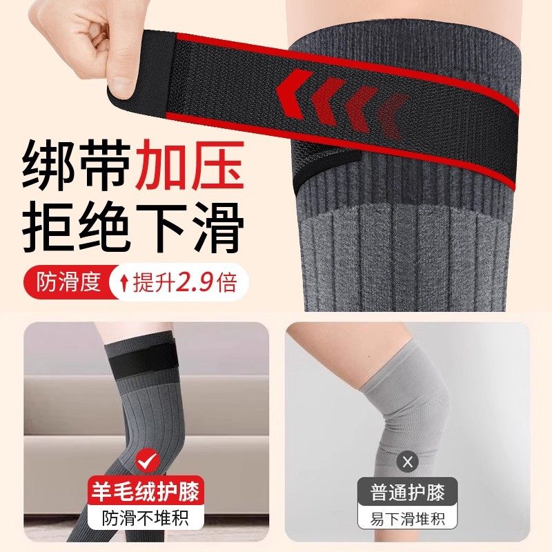 羊绒护膝盖保暖关节长筒套冬天加厚防滑中老年人防寒羊毛加长加绒