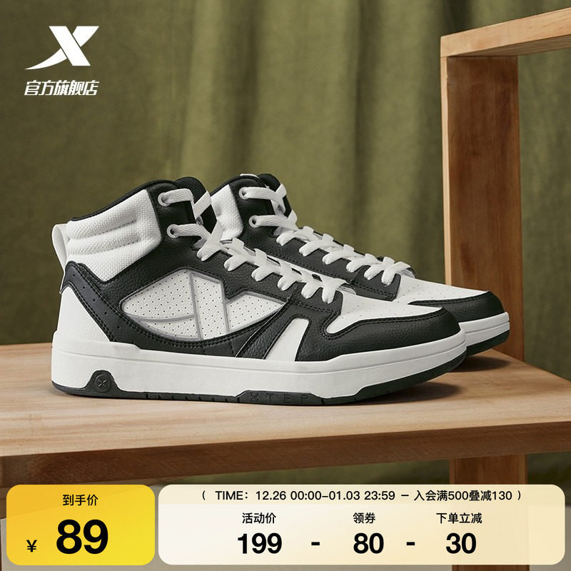 特步maxx-lite板鞋|高帮男鞋2025夏季新款革面休闲鞋黑白运动鞋子