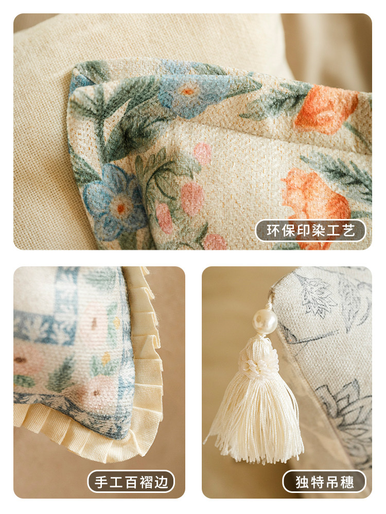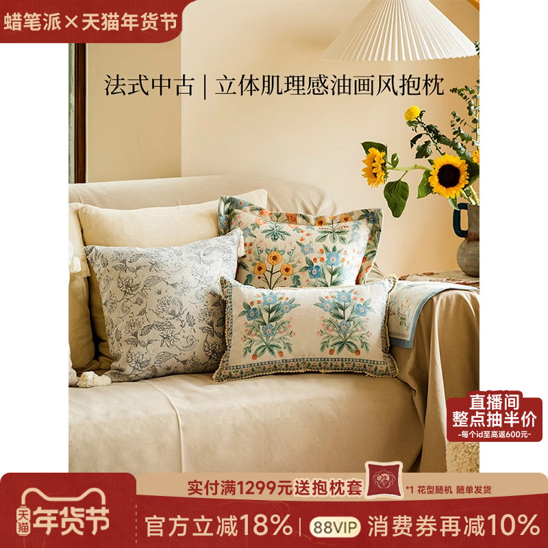 【孤品4折】蜡笔派花海抱枕法式轻奢复古风客厅沙发靠垫卧室靠枕
