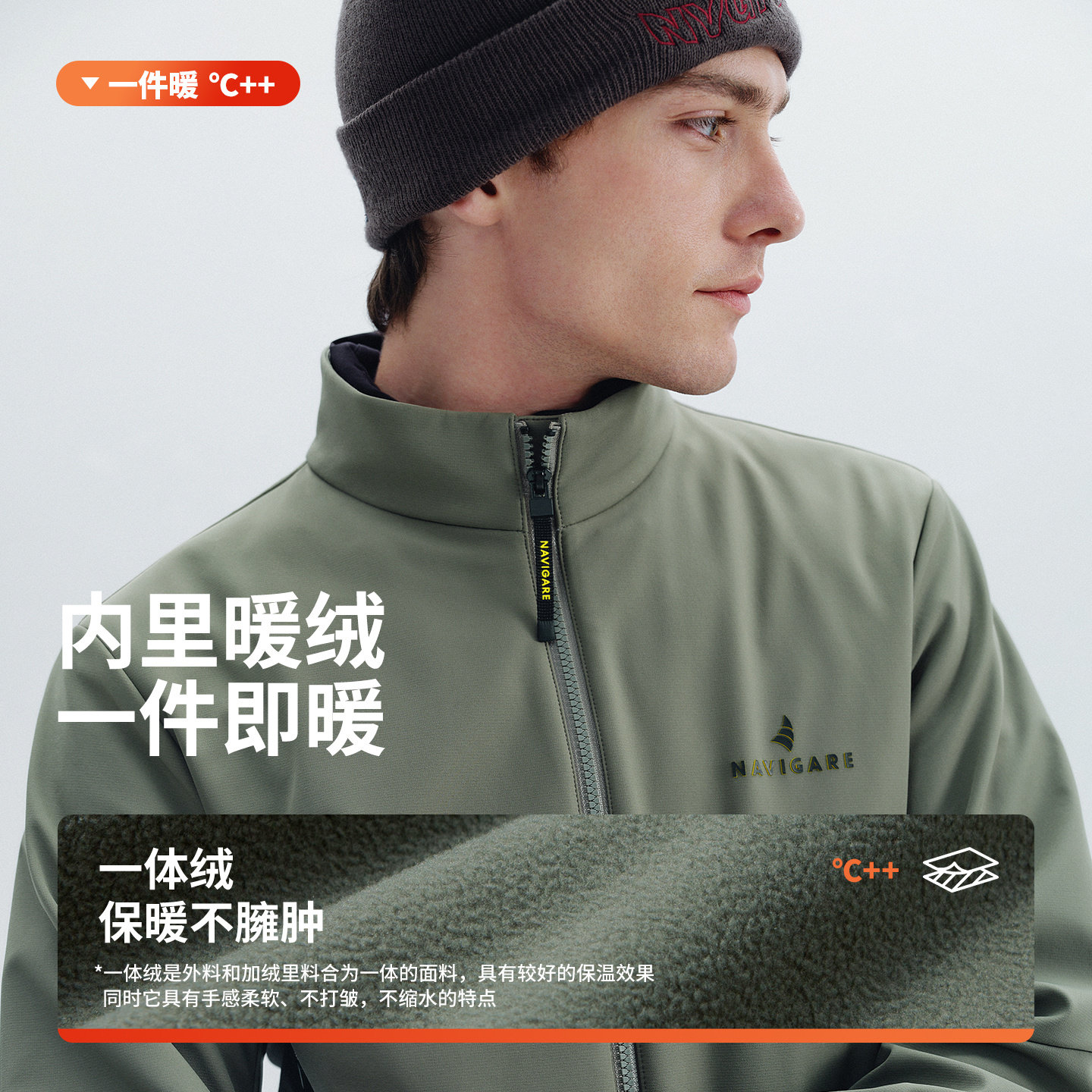 [领航者系列]Navigare小帆船绿色加绒男夹克秋冬新品立领三防外套