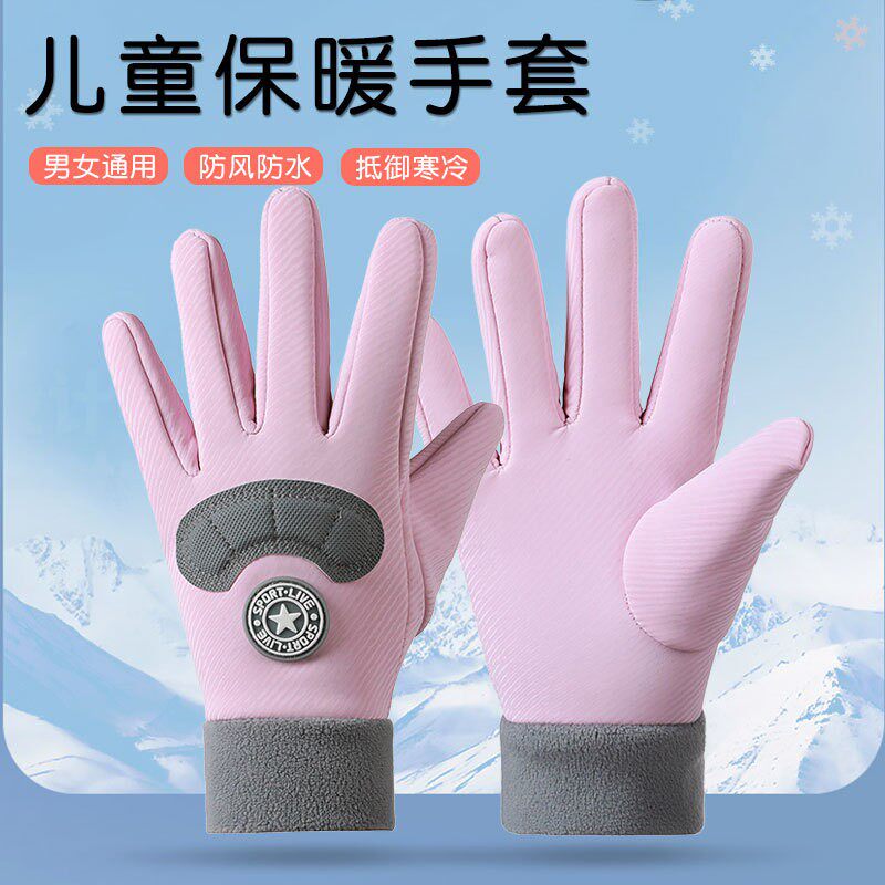 加绒防泼水儿童保暖手套防风防寒秋冬季5-15岁男女童大童滑雪玩雪