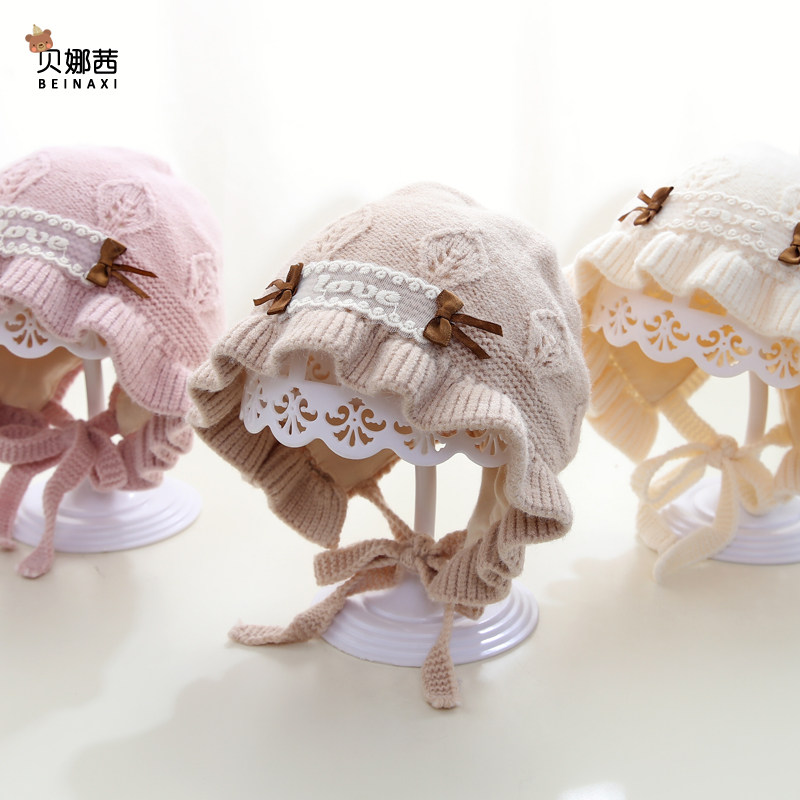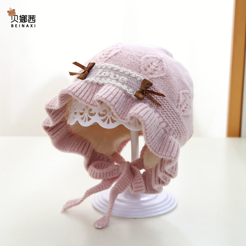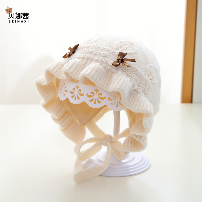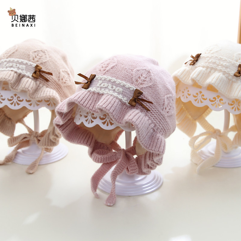 婴儿帽子秋冬季宝宝女婴幼儿洋气公主帽小月龄加厚保暖毛线帽冬天