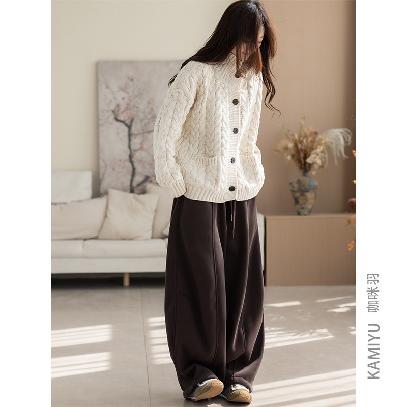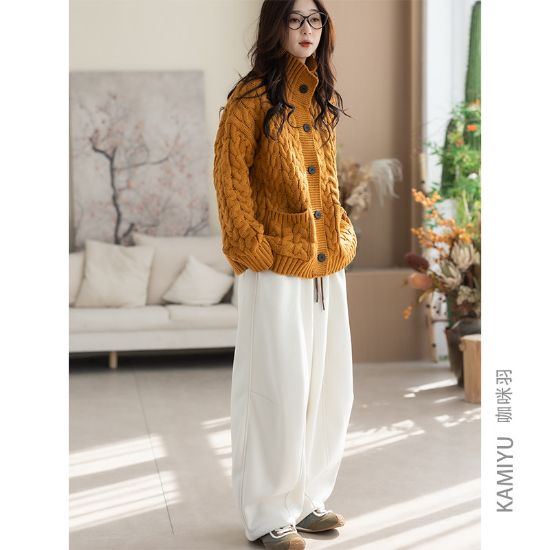 NVPVVA 秋冬新款学院风慵懒翻领绞花毛衣麻花宽松套头LOGO针织衫