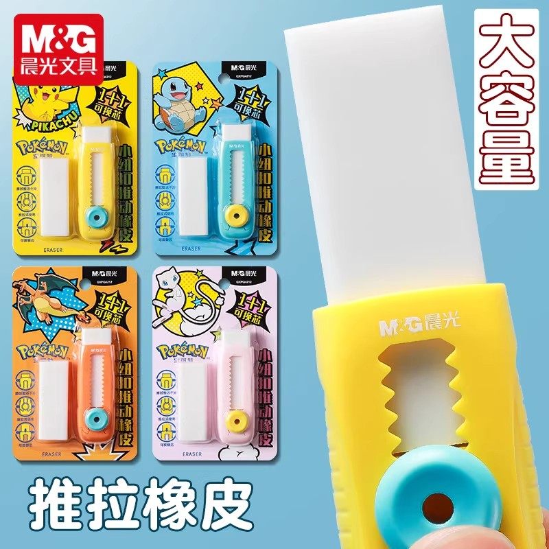 晨光宝可梦限定推动橡皮擦皮卡丘可爱彩色推拉式橡皮卡通小学生专用不易留痕少屑擦字成线干净儿童美术绘画