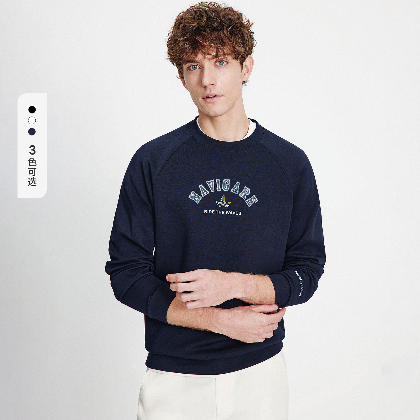 Navigare意大利小帆船休闲长袖T恤男士春秋季新款圆领保暖体恤衫