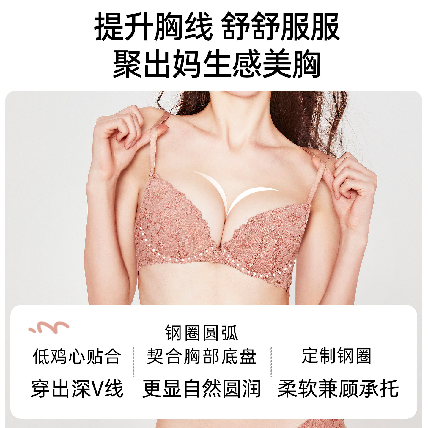 好奇蜜斯性感内衣女薄款大胸显小法式文胸套装蕾丝胸罩防下垂情调
