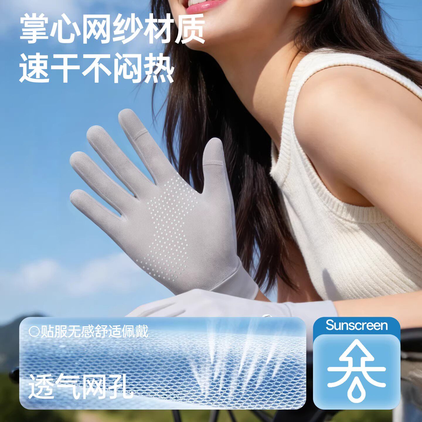 防晒手套女防紫外线2026新款夏季骑行电动专用露指加长遮阳薄冰丝