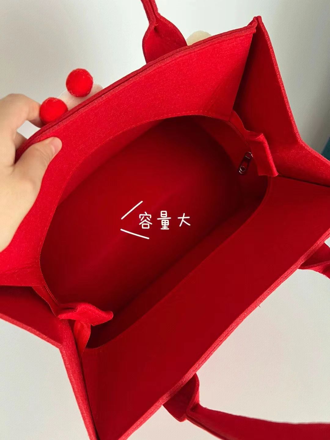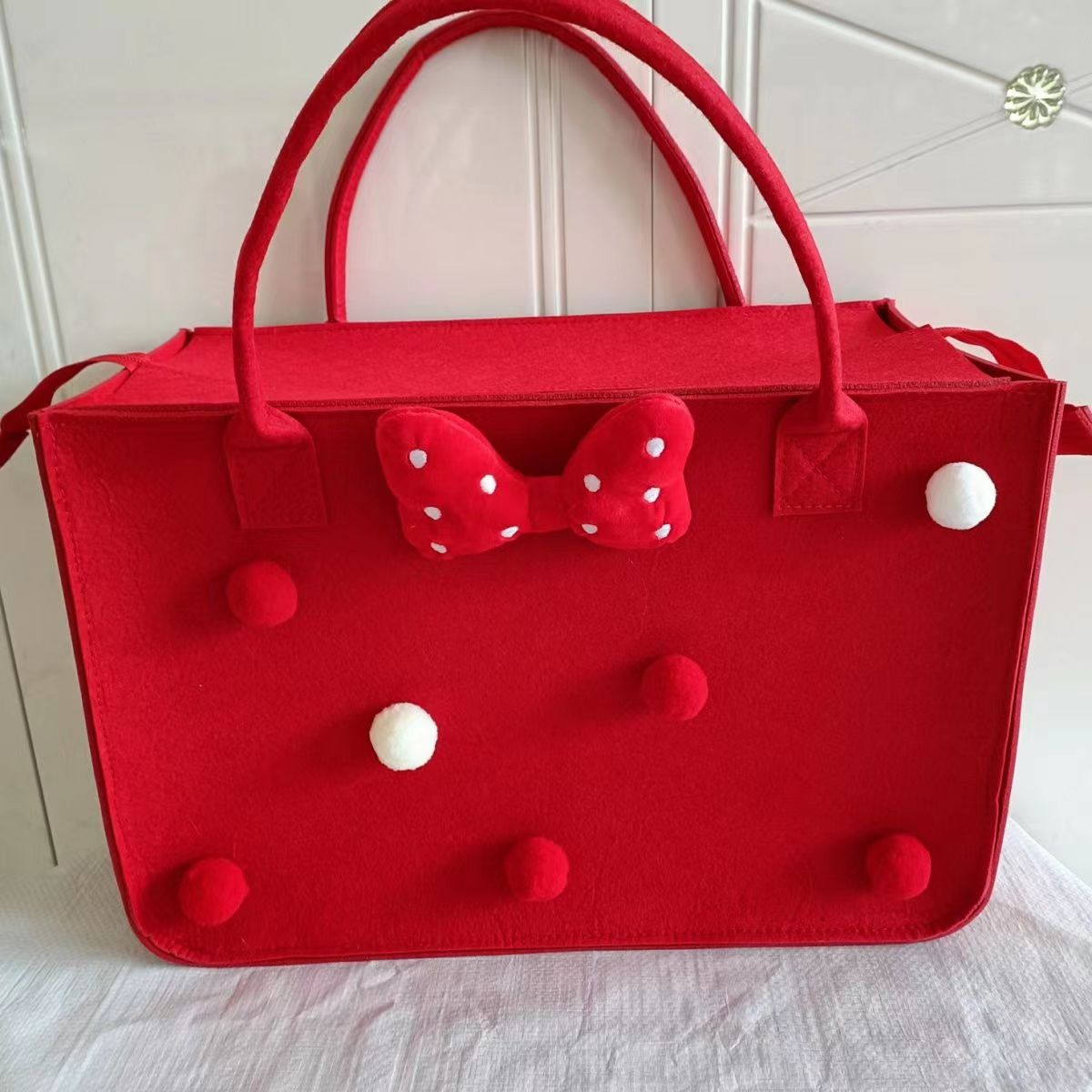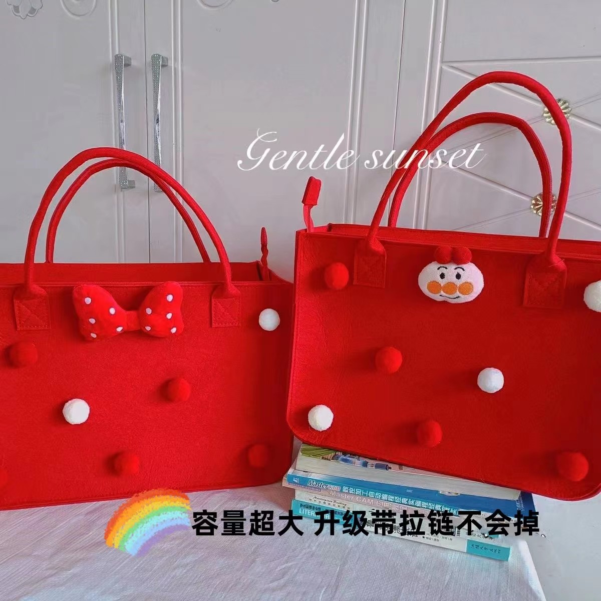 新款卡通毛毡包大容量手提购物袋加厚妈咪包网红百日宴礼品伴手礼