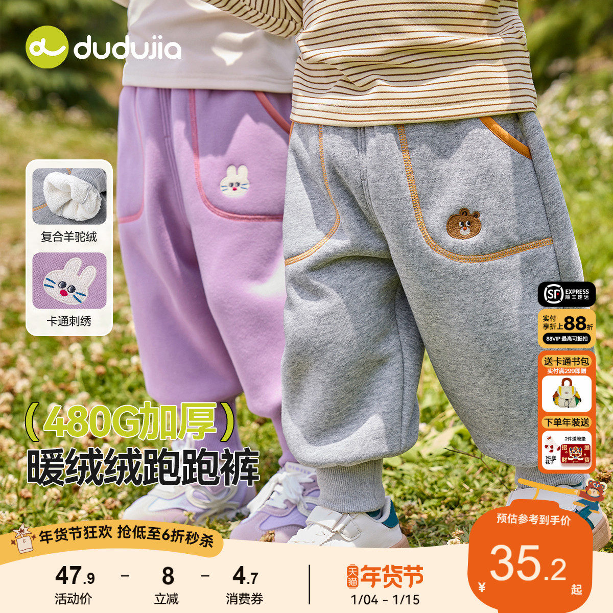 [暖的绒易]嘟嘟家男童裤子秋冬加绒宝宝长裤冬季儿童童装女童衣服