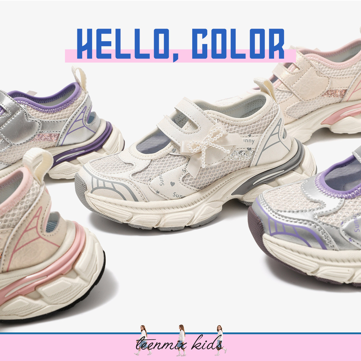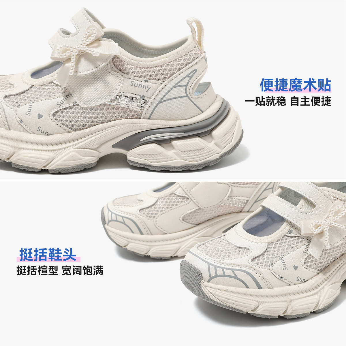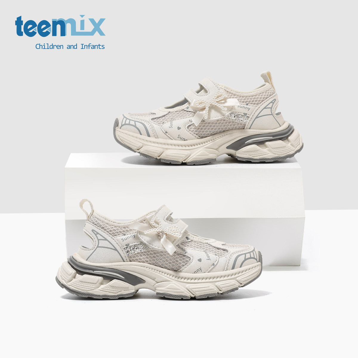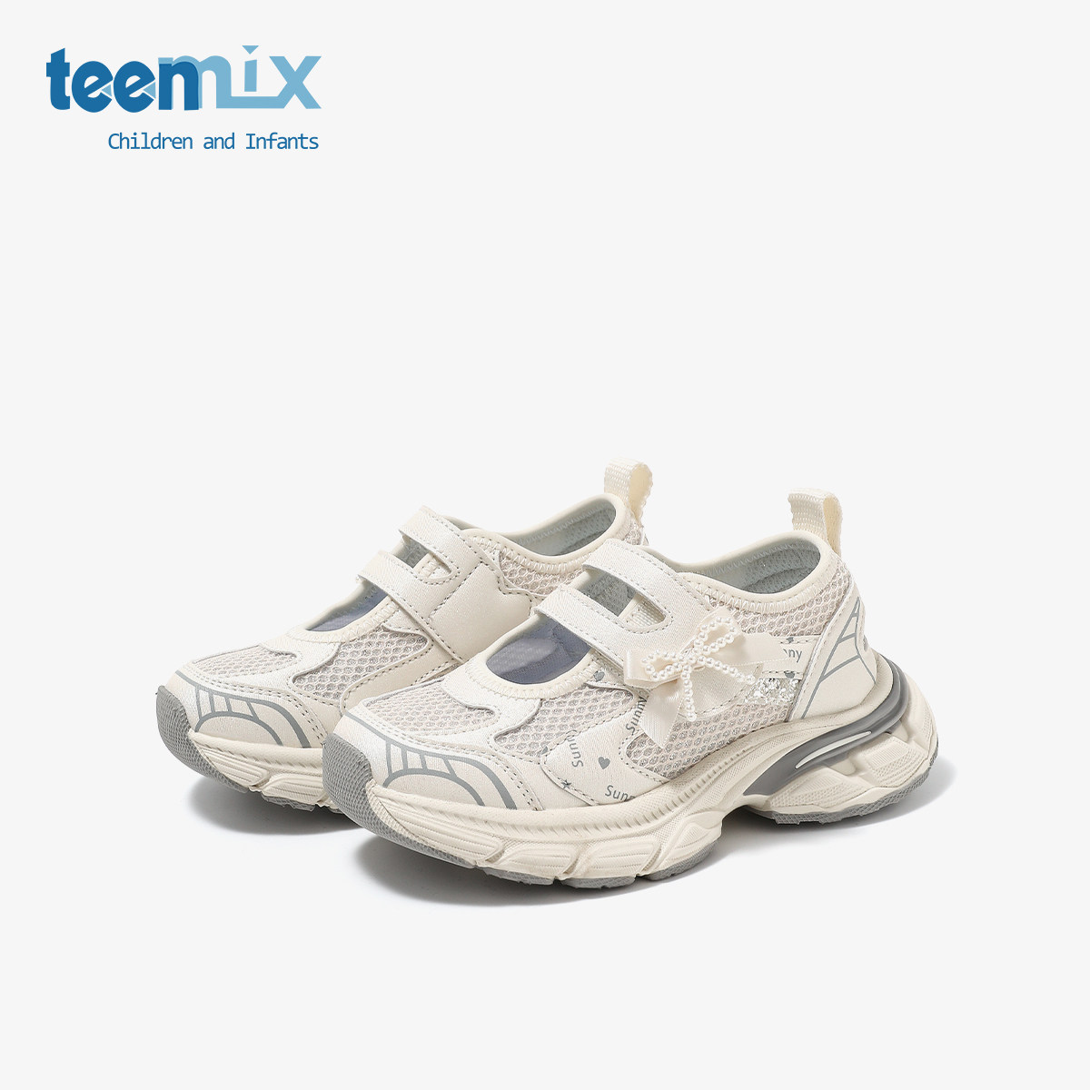天美意童鞋2026春夏新款女童运动风老爹鞋女孩透气蝴蝶结休闲凉鞋