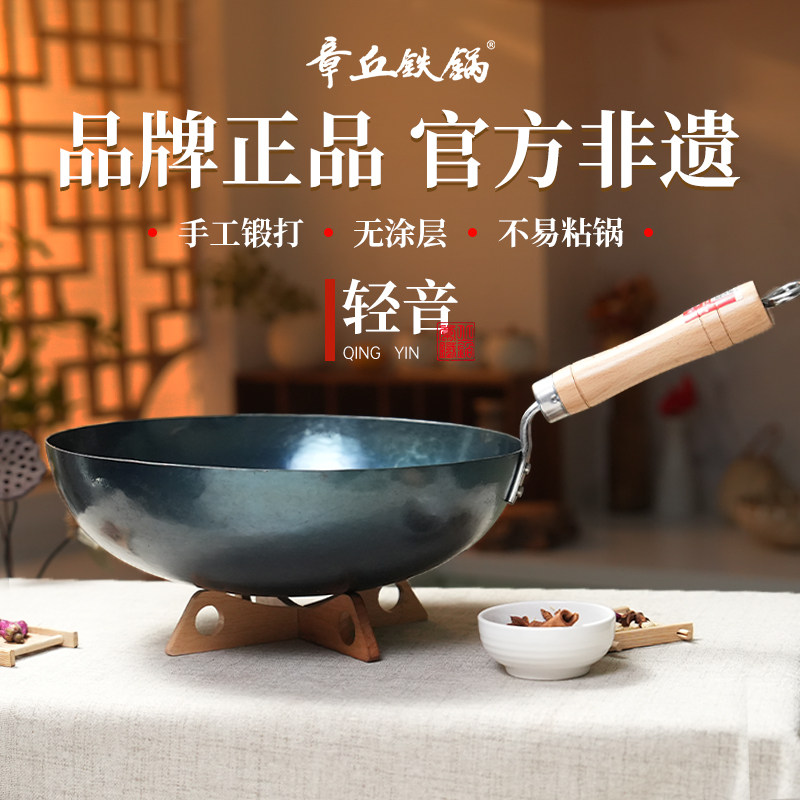 章丘铁锅官方旗舰店正品铁锅炒锅手工锻打无涂层不粘炒菜家用轻音