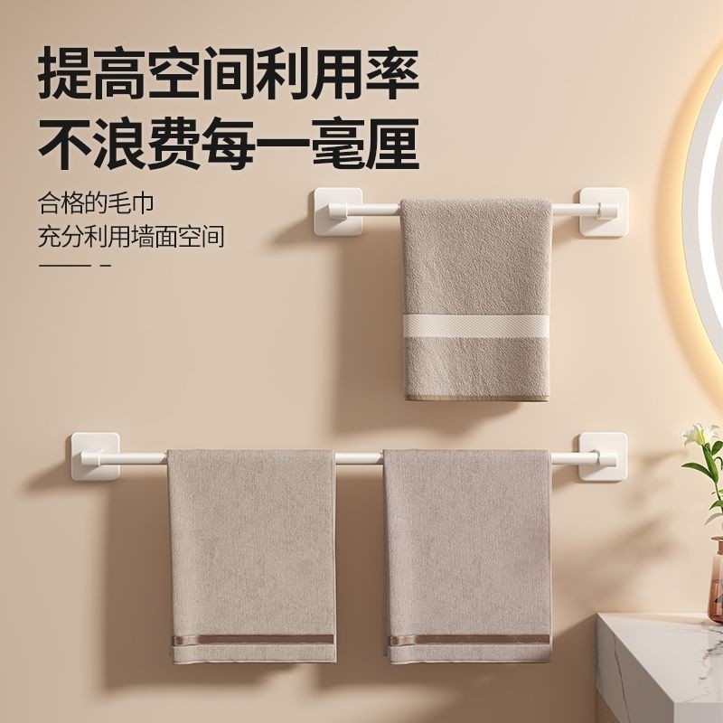 奶油风毛巾架免打孔卫生间太空铝浴室挂架卫浴五金挂件单杆毛巾杆