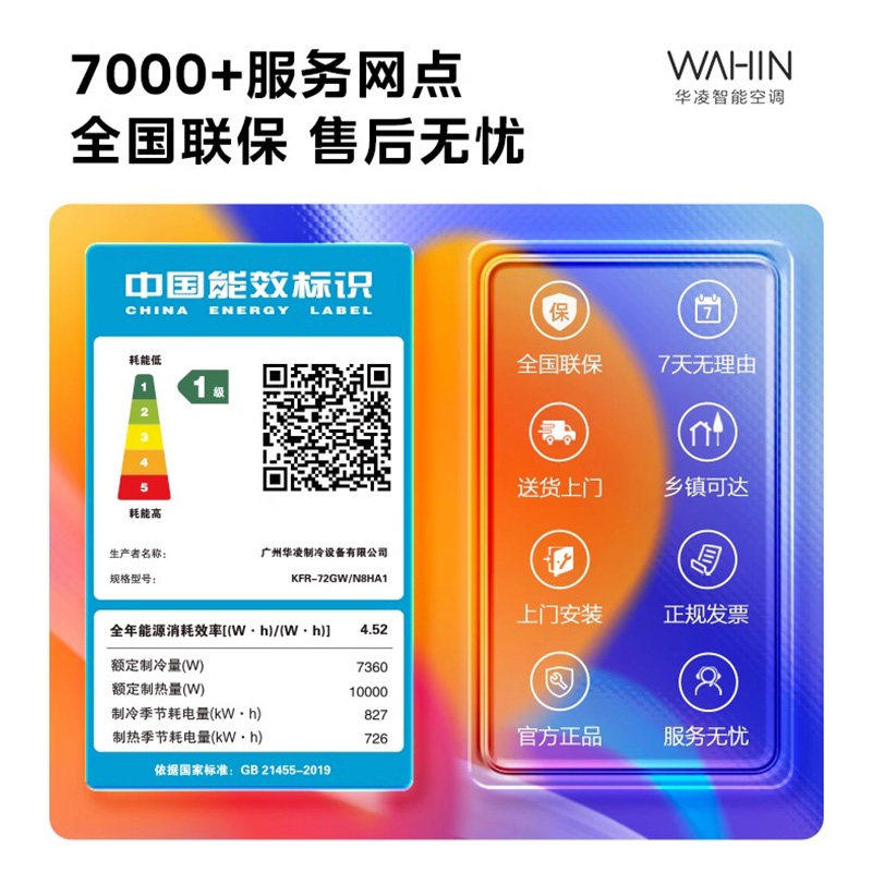 华凌空调一级能效3匹72HA1超省电大挂机家用智能壁挂式客厅卧室挂
