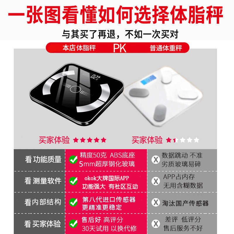 沃莱智能体脂秤电子称体重的家庭用高精准度小型人体减肥计器充电