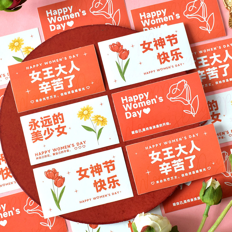 女神节快乐小清新礼物装饰封口贴3.8三八妇女节公司福利送员工礼品祝福贴画女朋友奶茶甜品店鲜花束方形贴纸