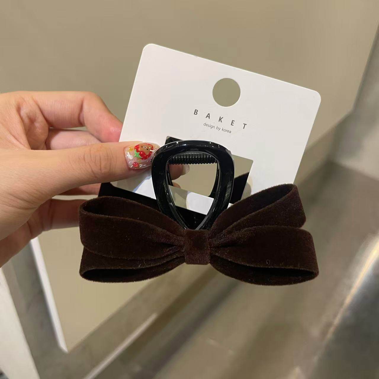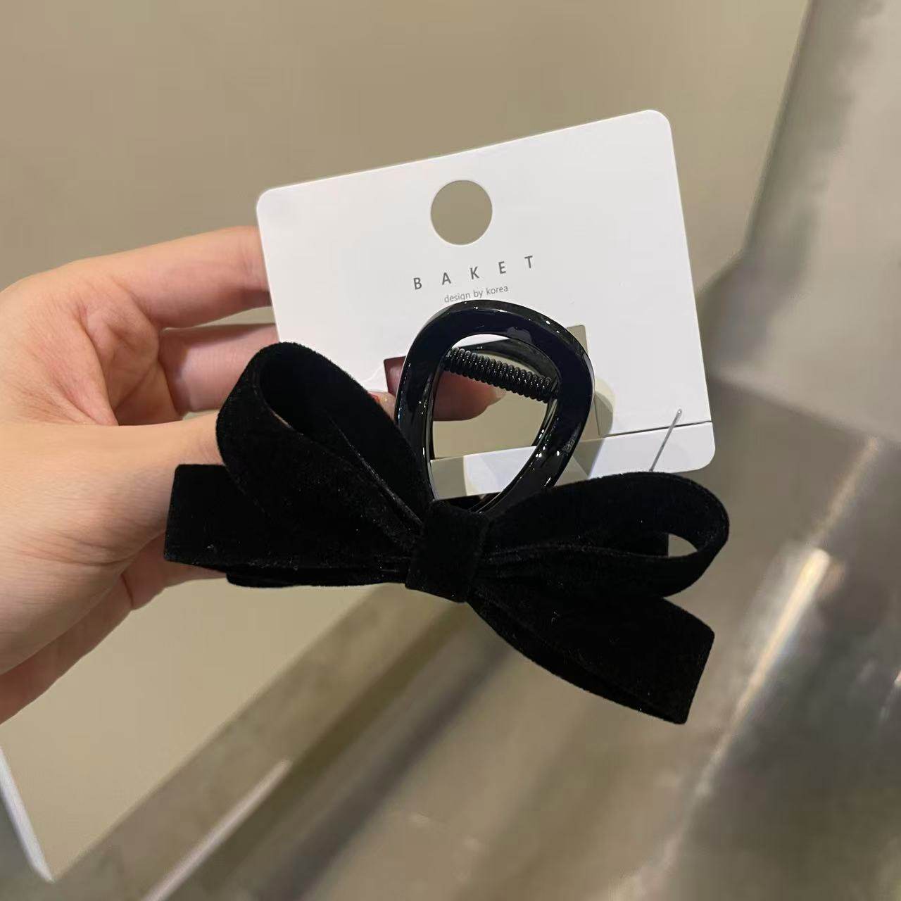 9.9韩国东大门baket发饰纯色植绒立体蝴蝶结抓夹