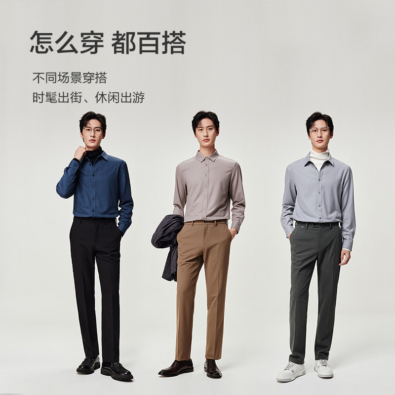 【可机洗羊毛衬衫】九牧王男士2025秋冬新款微弹商务正装长袖衬衣