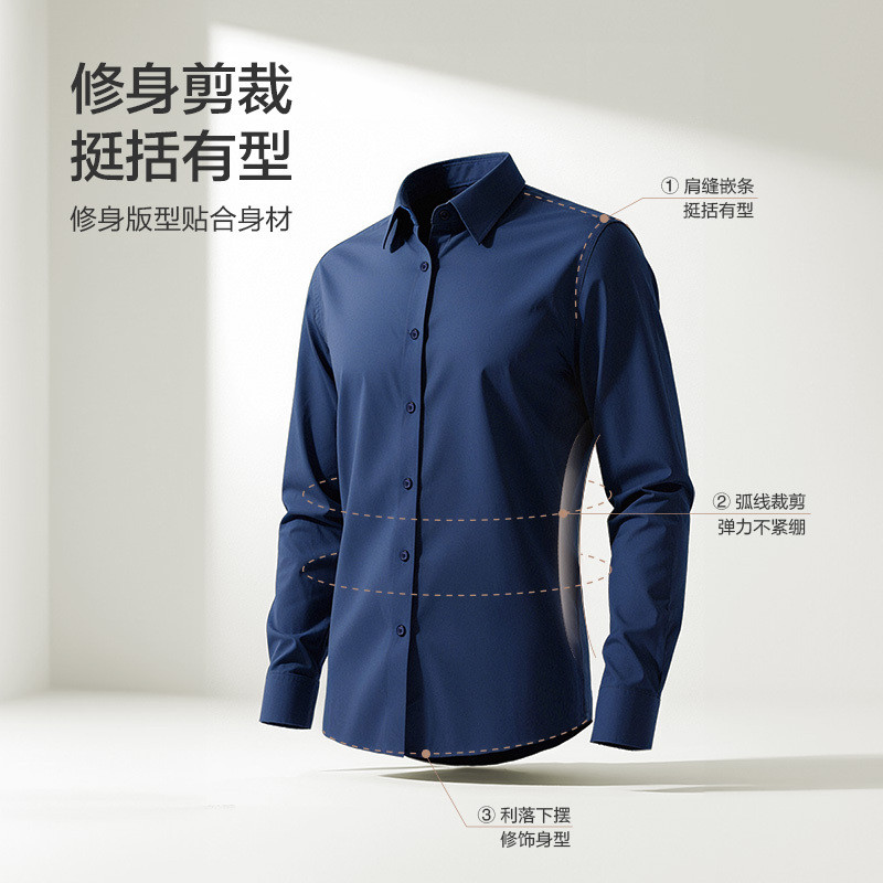 七多男士衬衫修身韩版秋季商务免烫纯色衬衣职业正装白衬衫男长袖
