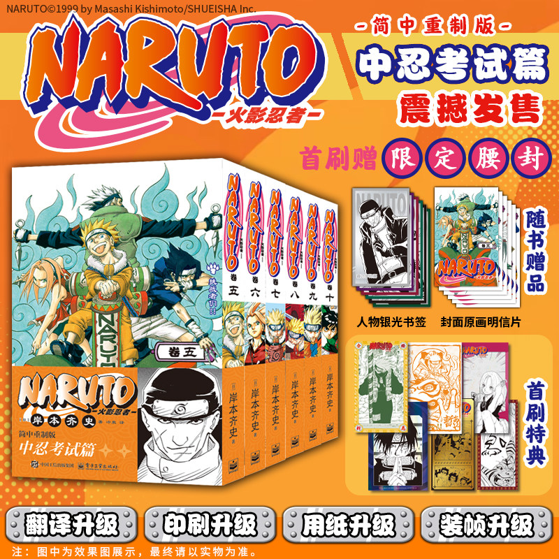 首刷特典【赠人物书签+原画明信片】火影忍者漫画书中忍考试篇波之国篇全十卷 简体中文重制版 岸本齐史 漩涡鸣人疾风传天地卷