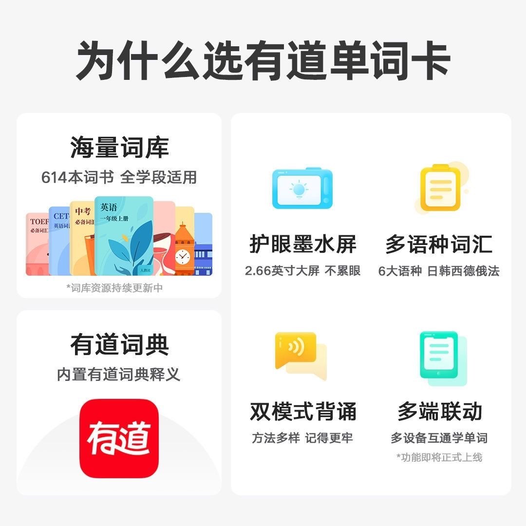 网易有道电子单词卡英语背单词神器墨水屏单词机小语种学生便携式