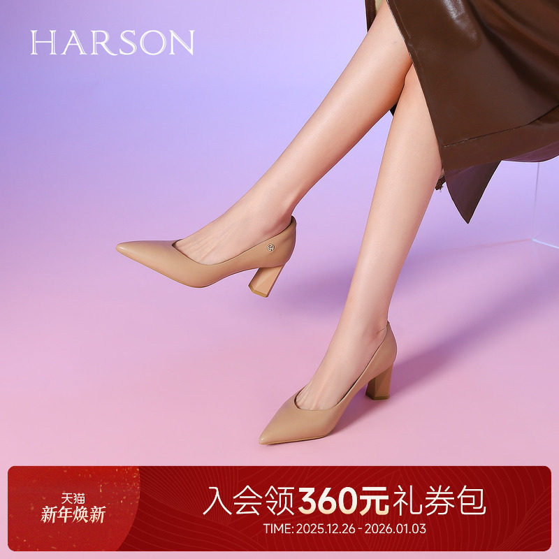 哈森尖头气质真皮高跟鞋通勤百搭舒适女单鞋2026新款HS267119