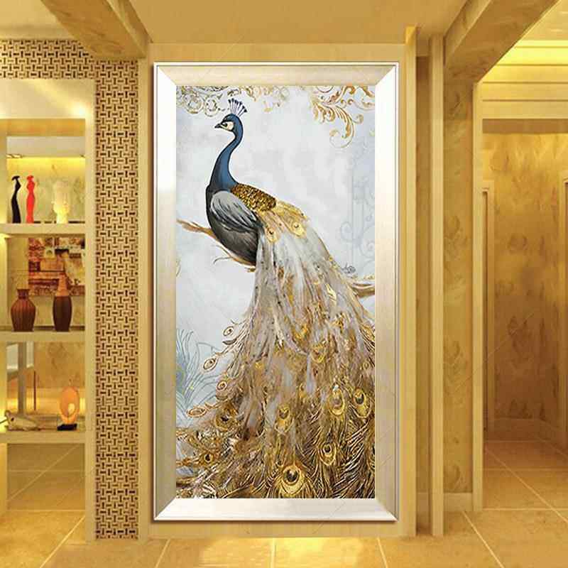十字绣 新款精准印花十字绣 厂家直销 客厅玄关 金孔雀