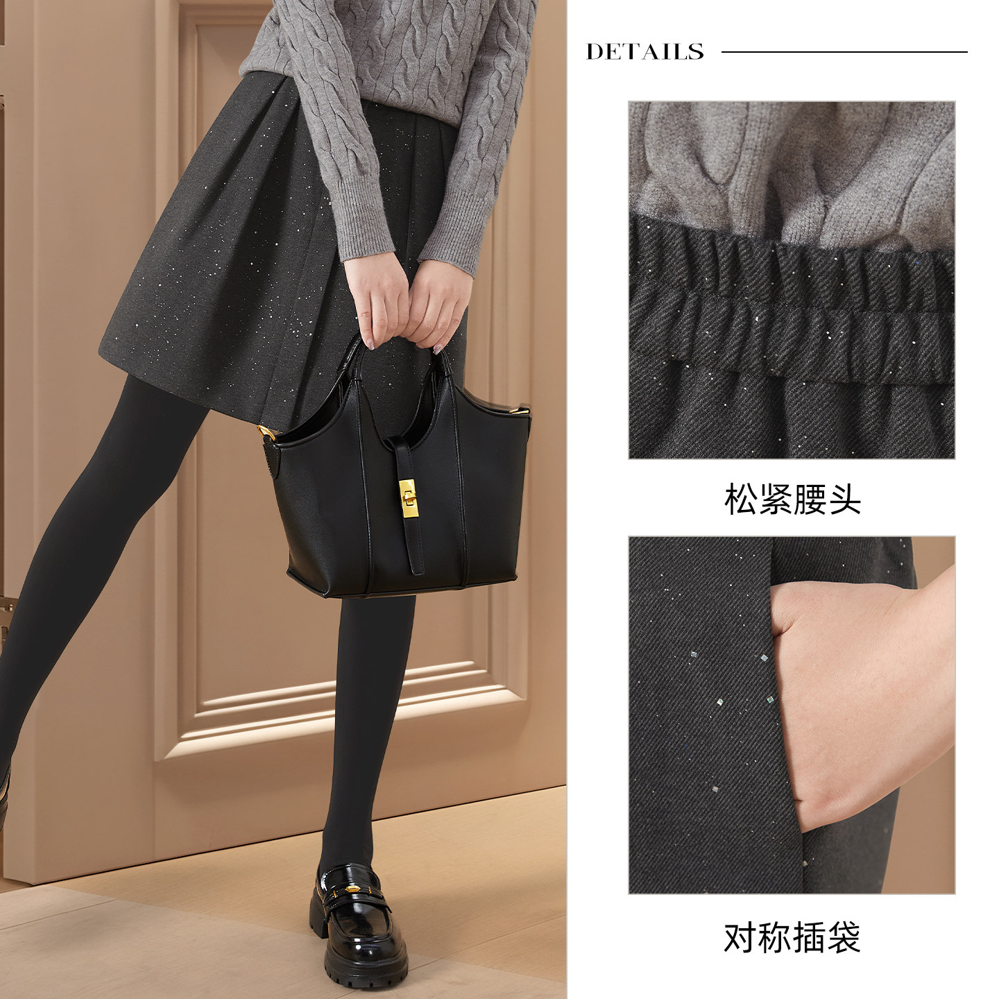 她池高腰半身裙2025秋装新款女装时尚通勤风松紧腰短款撒银A字裙