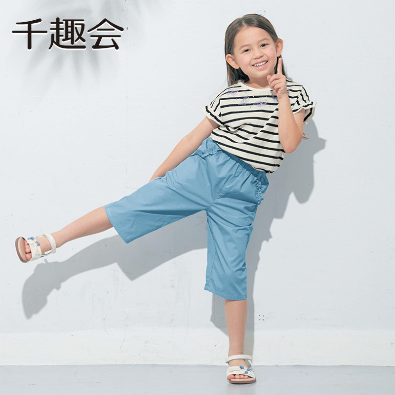 【冷感面料】千趣会童装夏季儿童短裤甜美荷叶边女童七分裤子