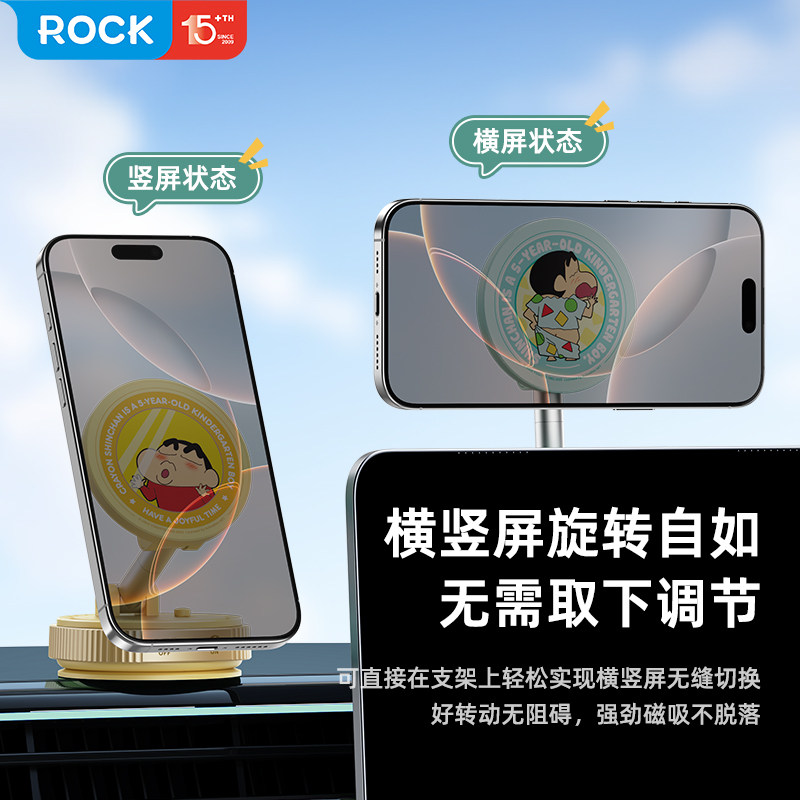 蜡笔小新手机磁吸支架车载支架女生真空吸附通用型盘手机架2025新款吸盘式导航专用中控台支架神器新型黑科技