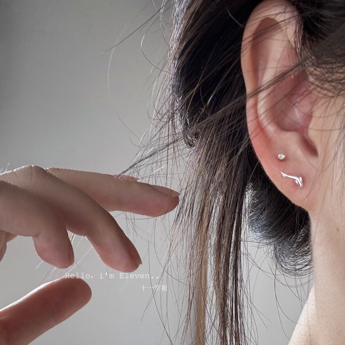 999纯银耳钉女养耳洞耳骨钉小众高级感锆石耳蜗钉水钻耳环银耳饰