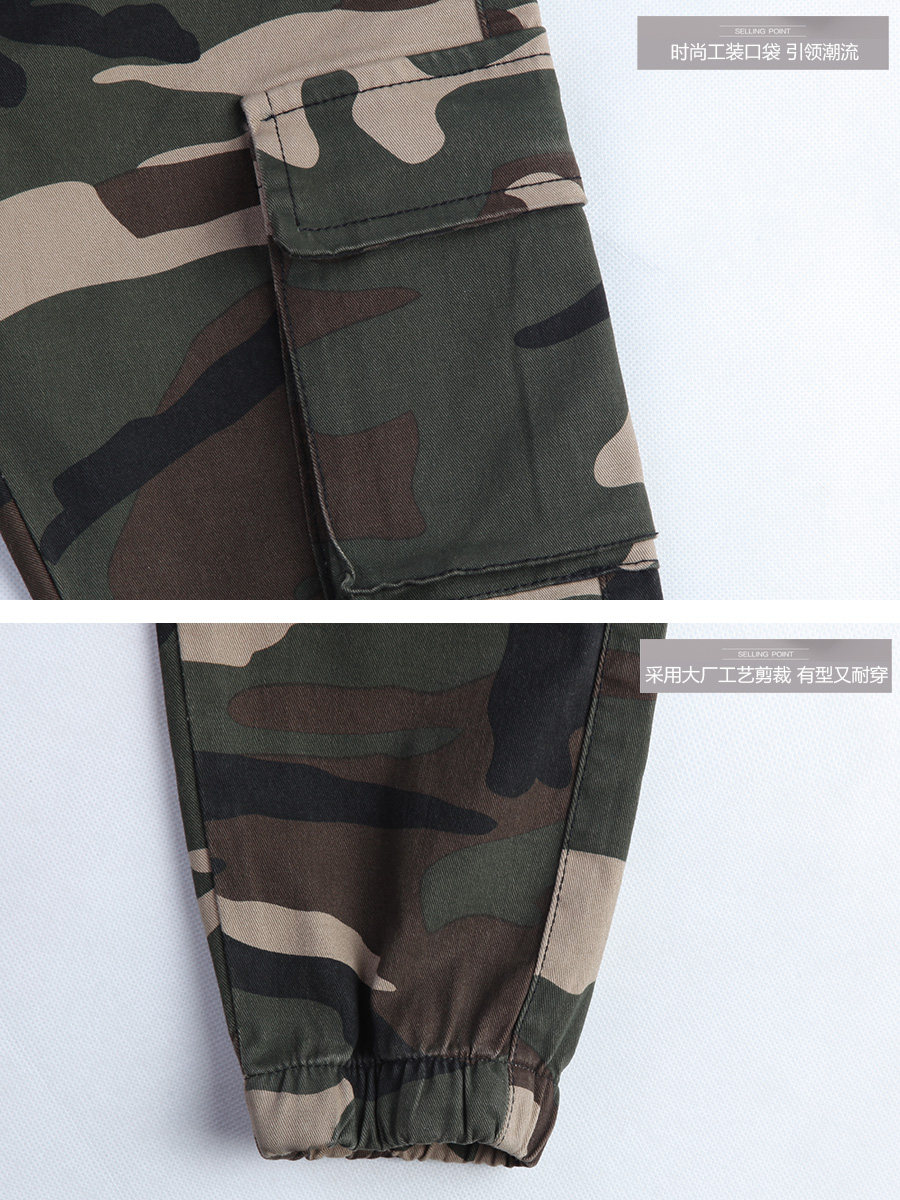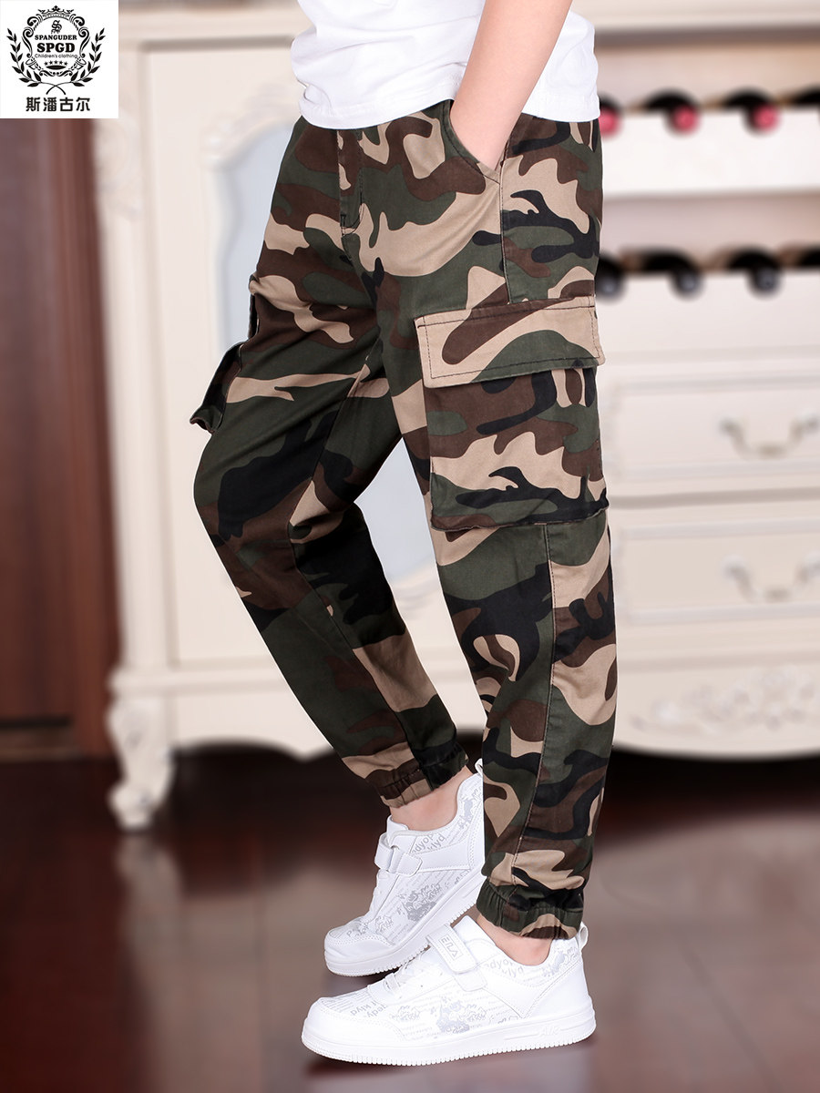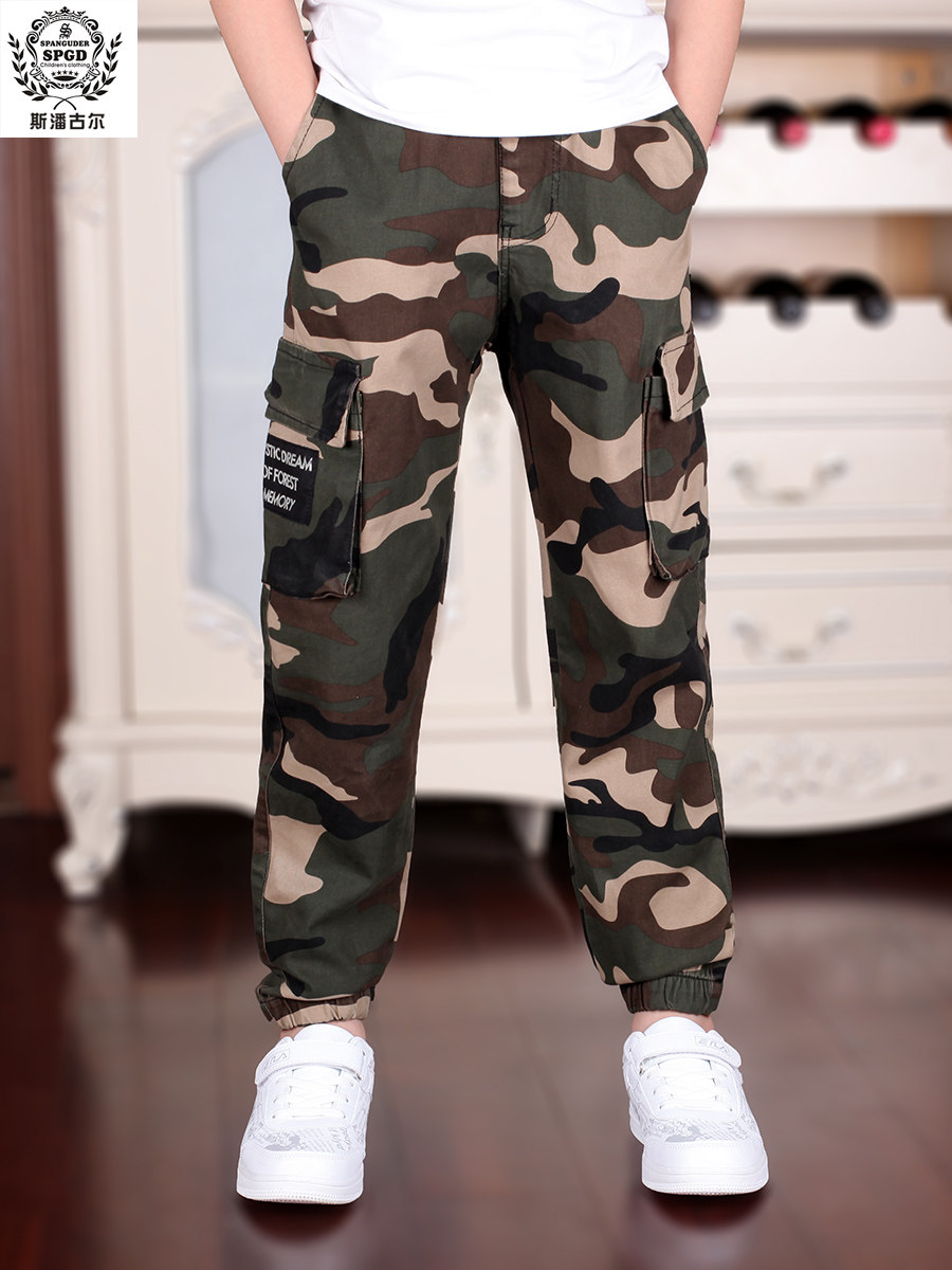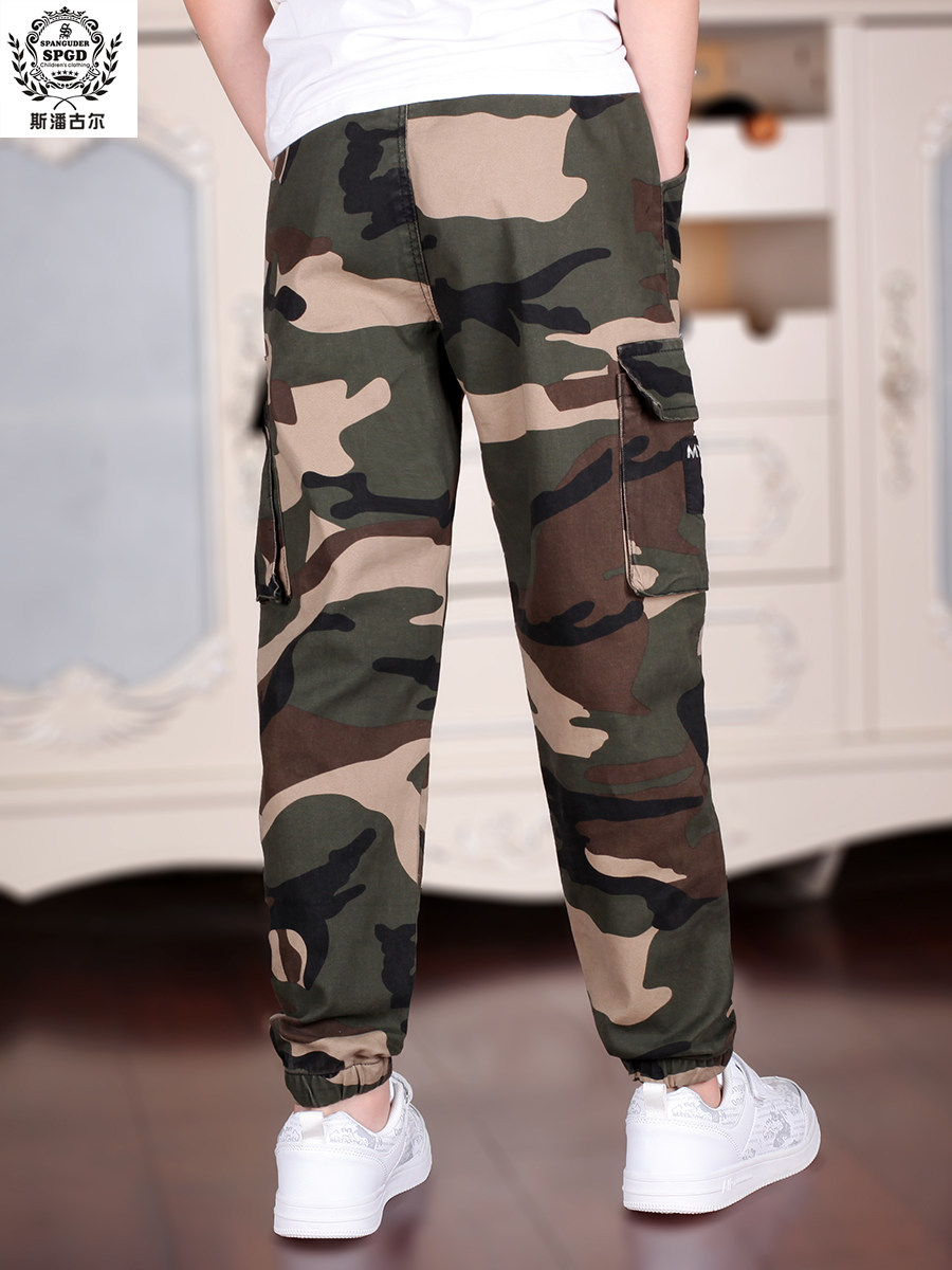 斯潘古尔男童军训迷彩休闲裤2025秋新款工装户外中大童儿童裤子