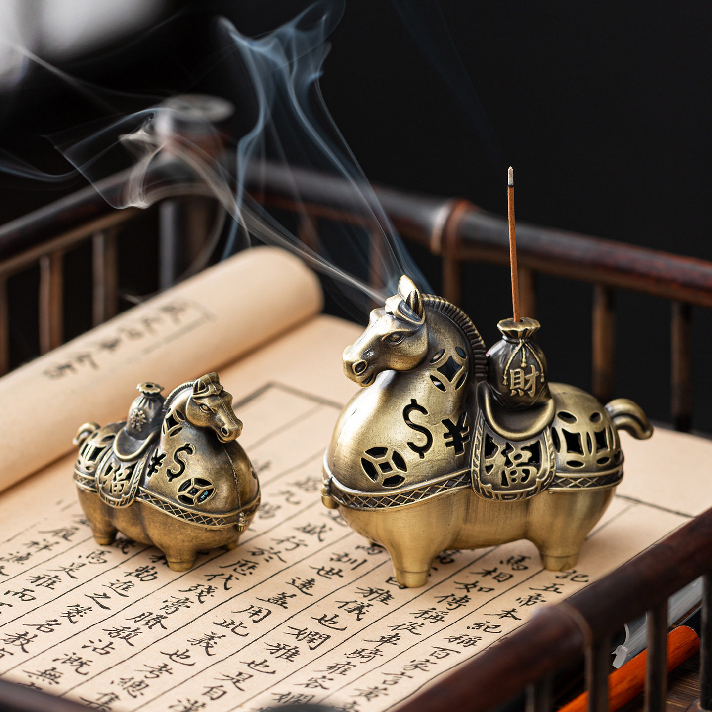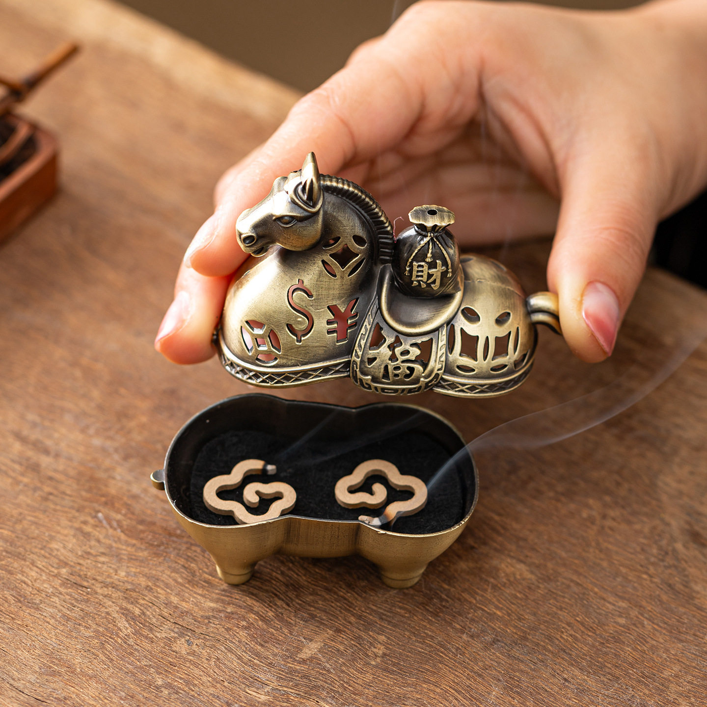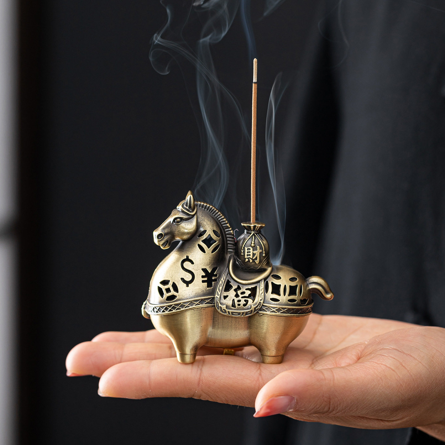 马年合金香炉马上发财香薰炉檀香炉中式古典线香盘香炉工艺品摆件
